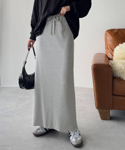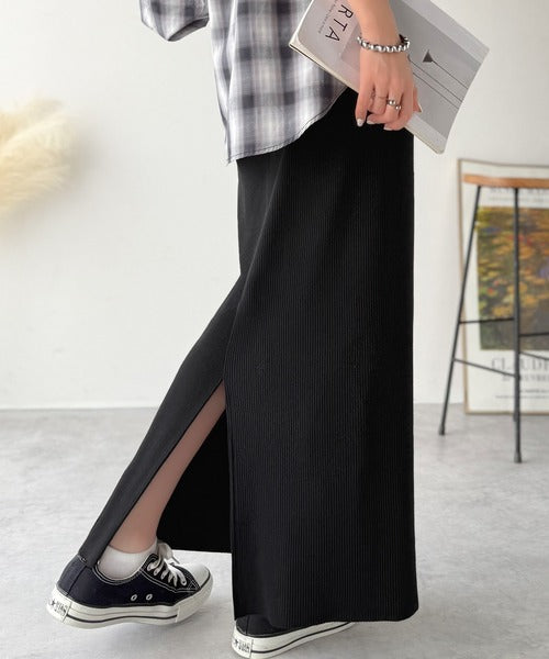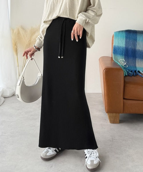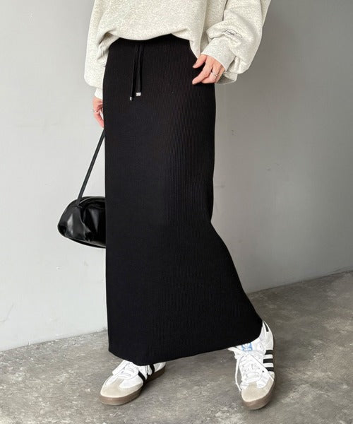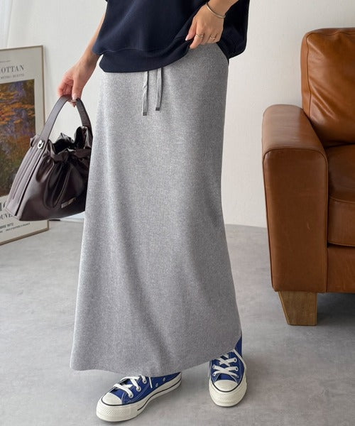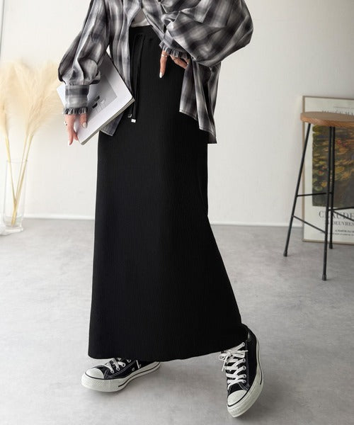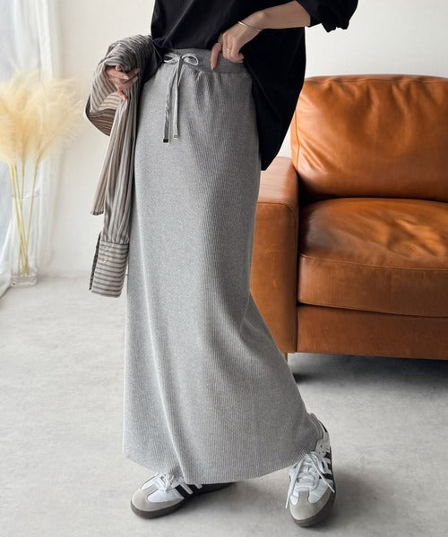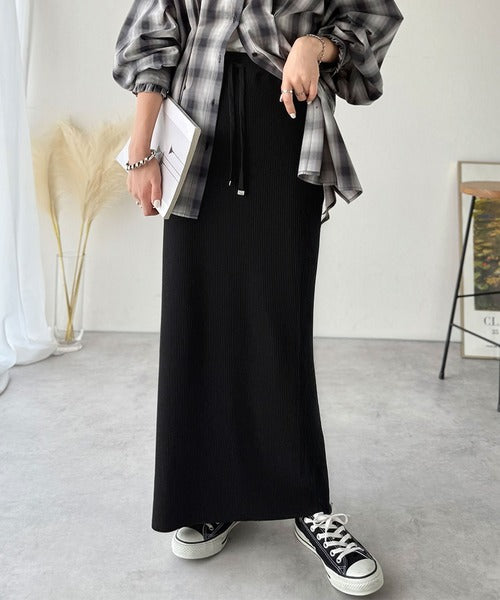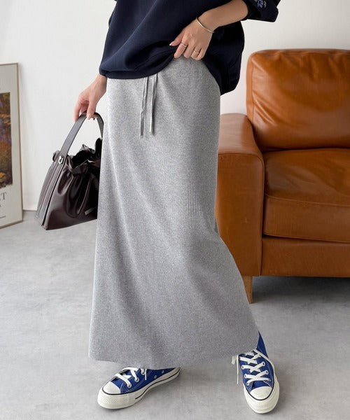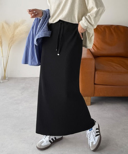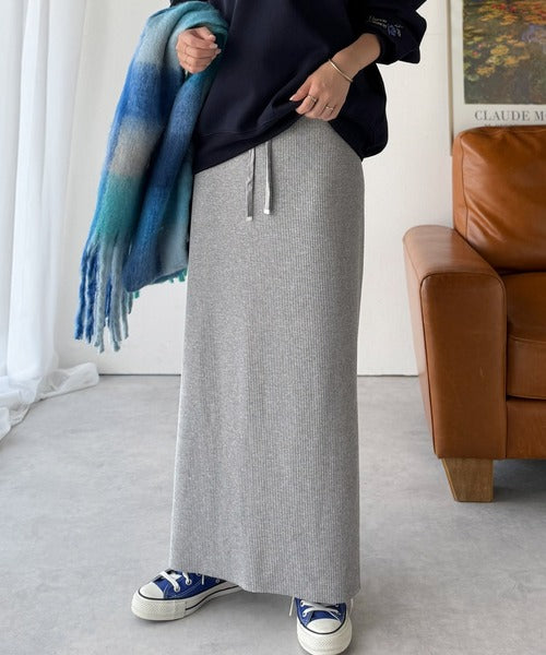 ストンと落ち感のあるロング丈が魅力のリブスカート。