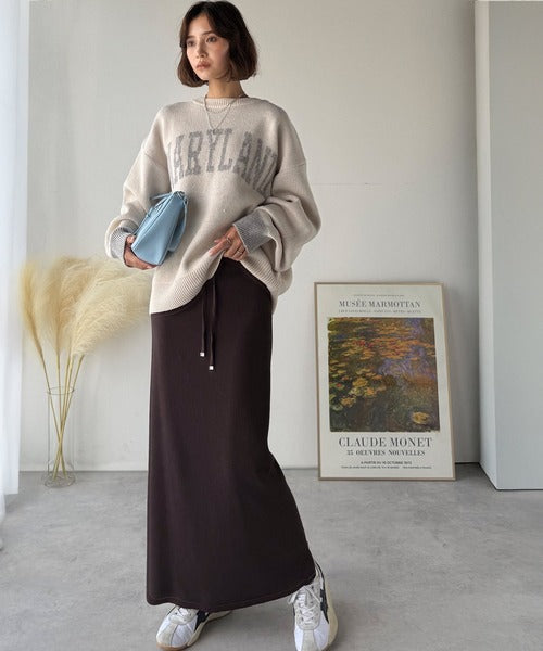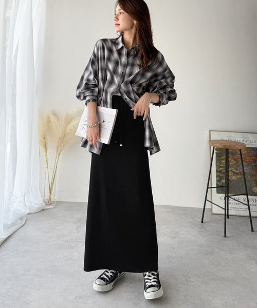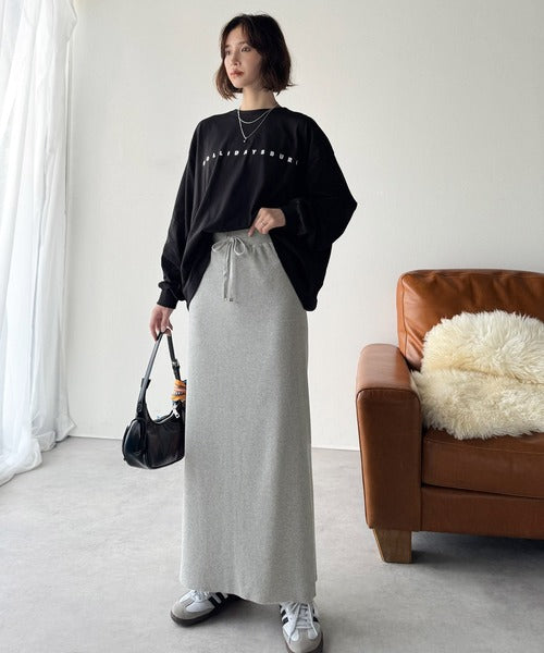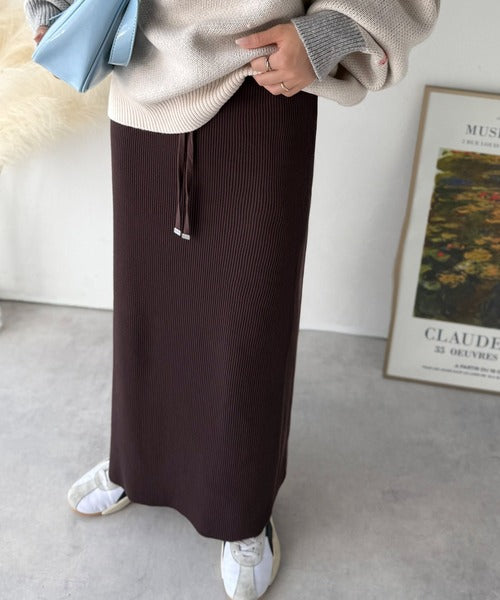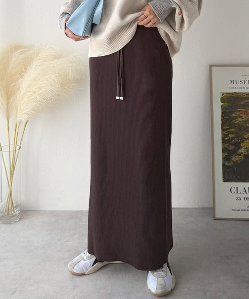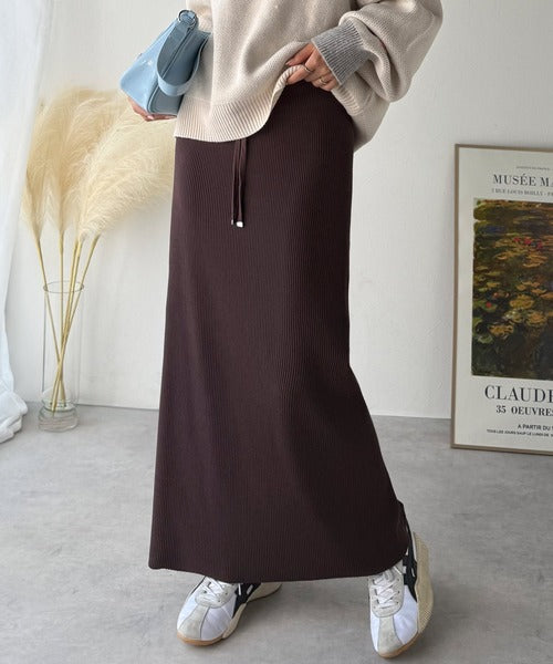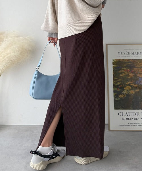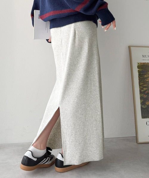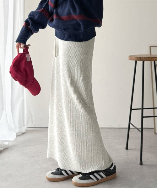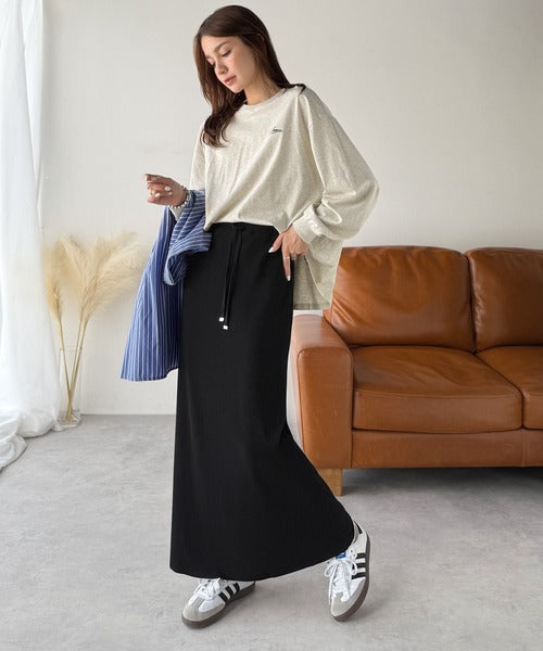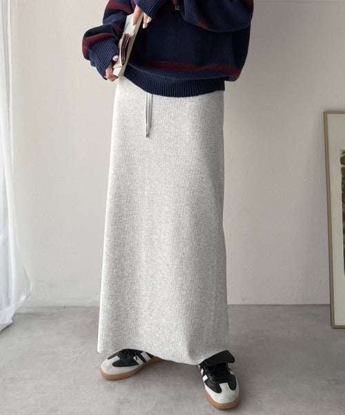 ストンと落ち感のあるロング丈が魅力のリブスカート。