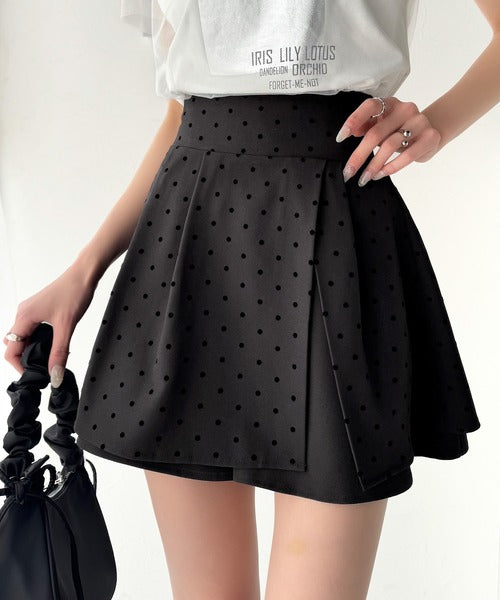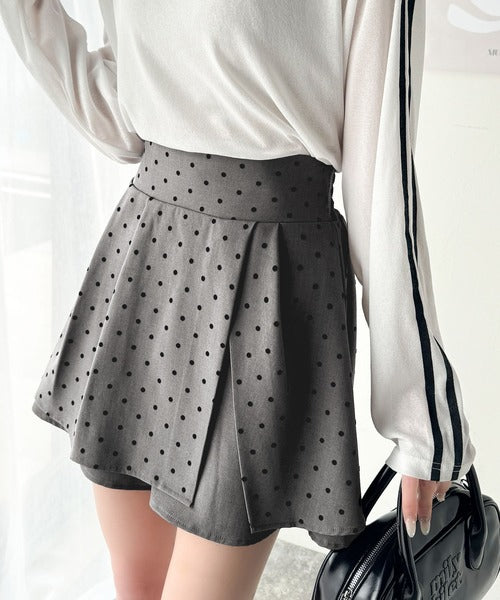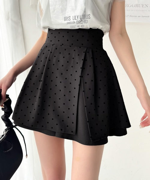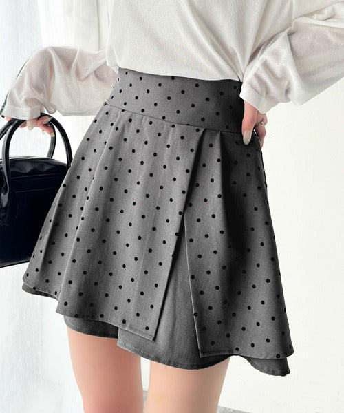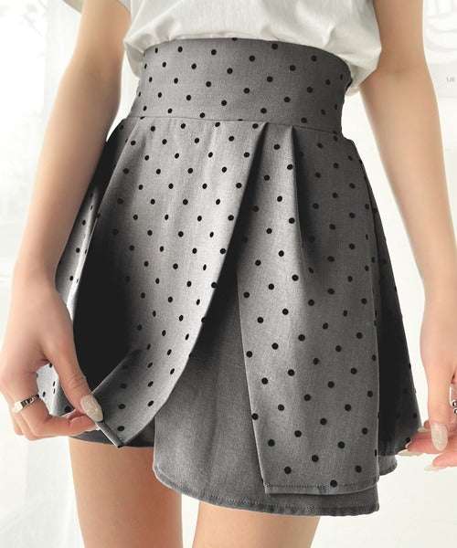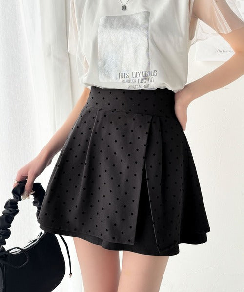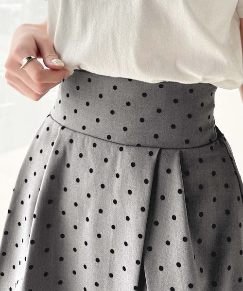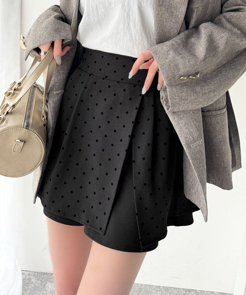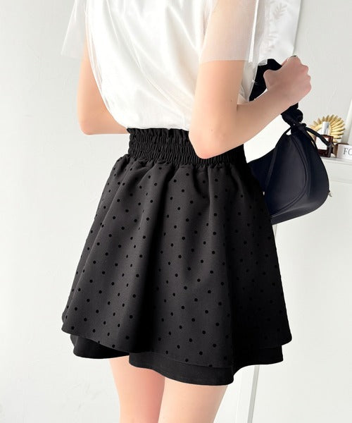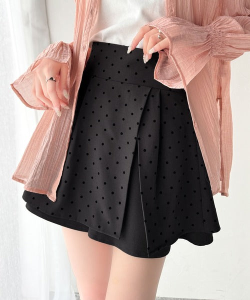ふんわりシルエットの魅力たっぷり。フロッキードットキュロットフレアミニスカート(セットアップ可能) ce1240051