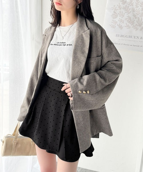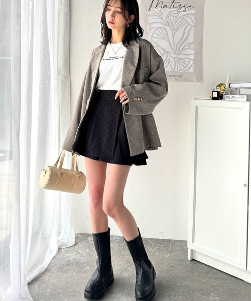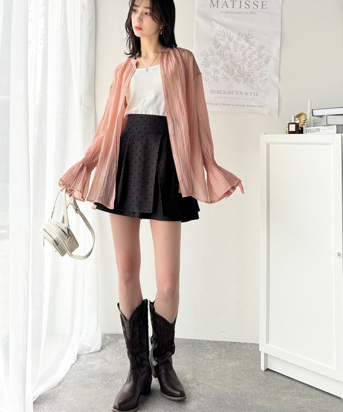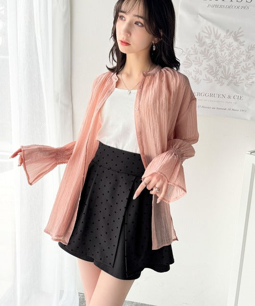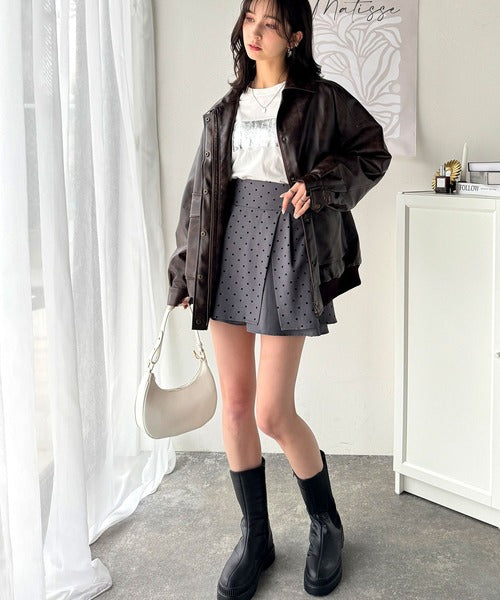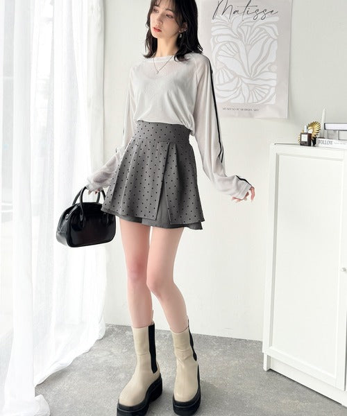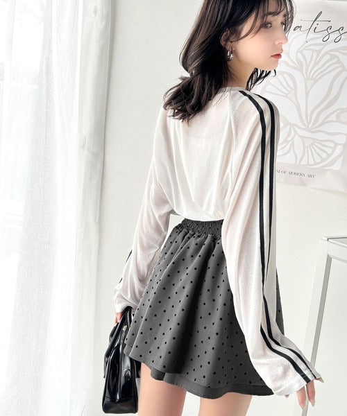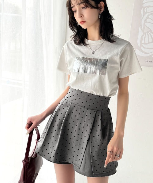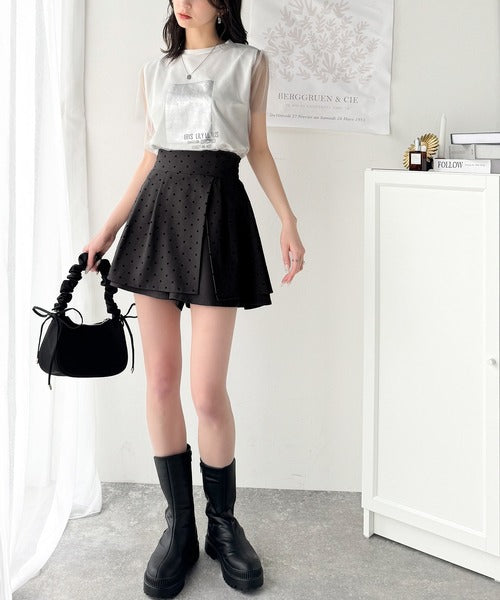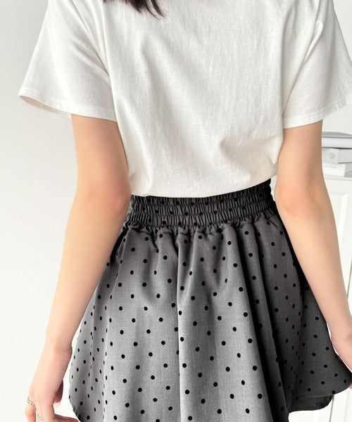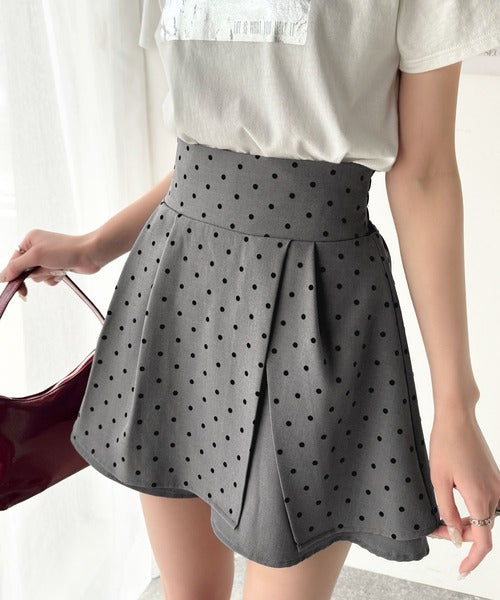 ふんわりシルエットの魅力たっぷり。フロッキードットキュロットフレアミニスカート(セットアップ可能) ce1240051