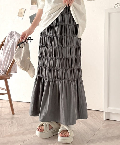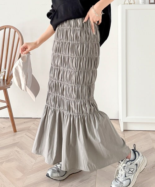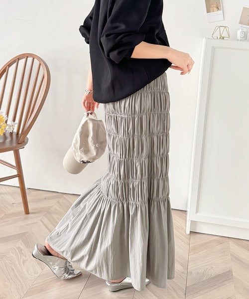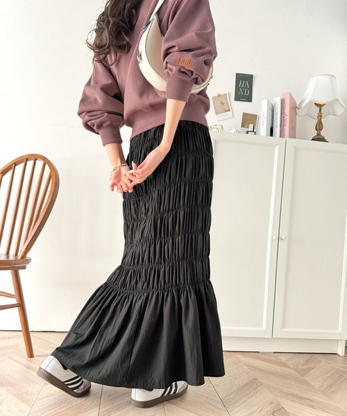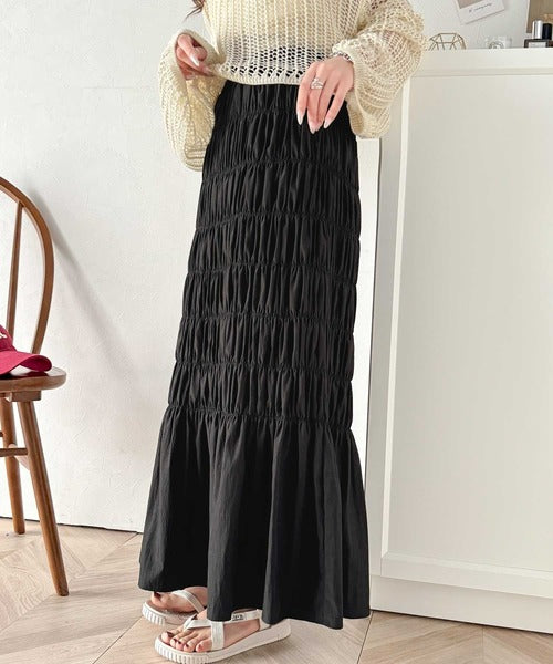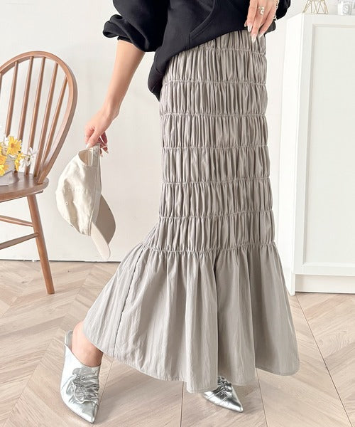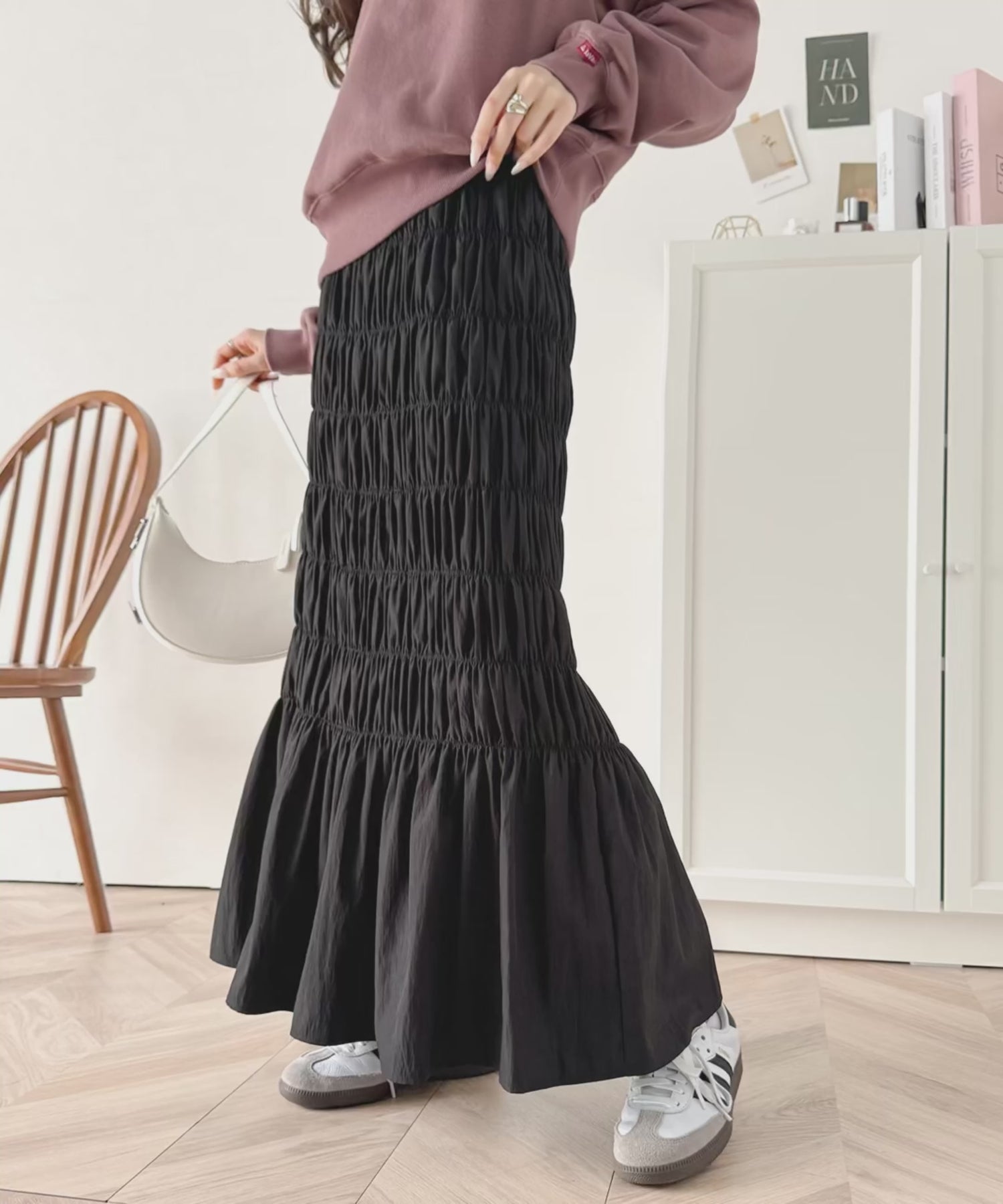 動くたびに美しく輝く大人可愛いマーメイド風シャーリングロングスカ-ト♪