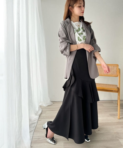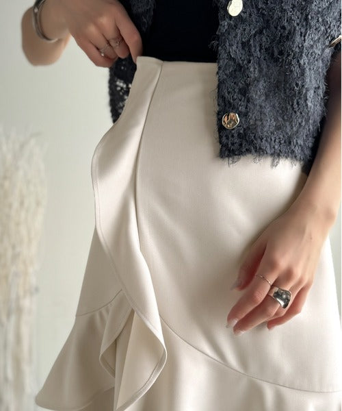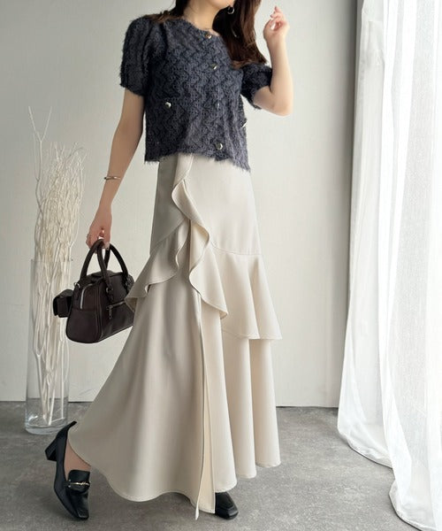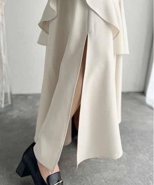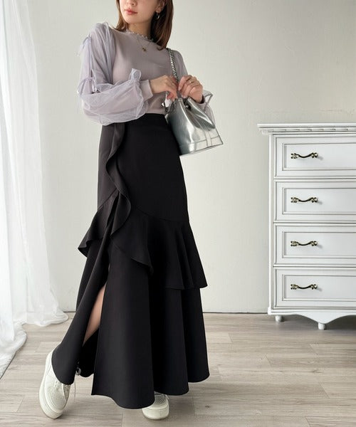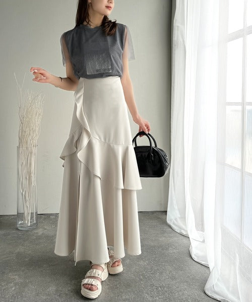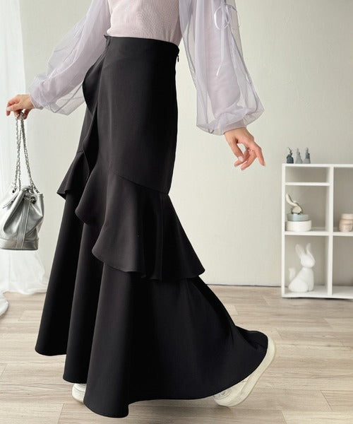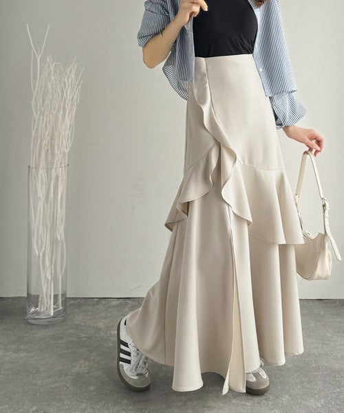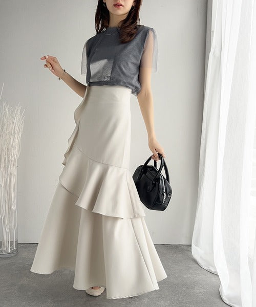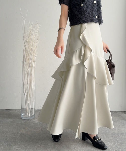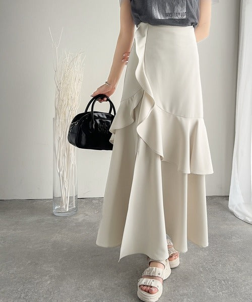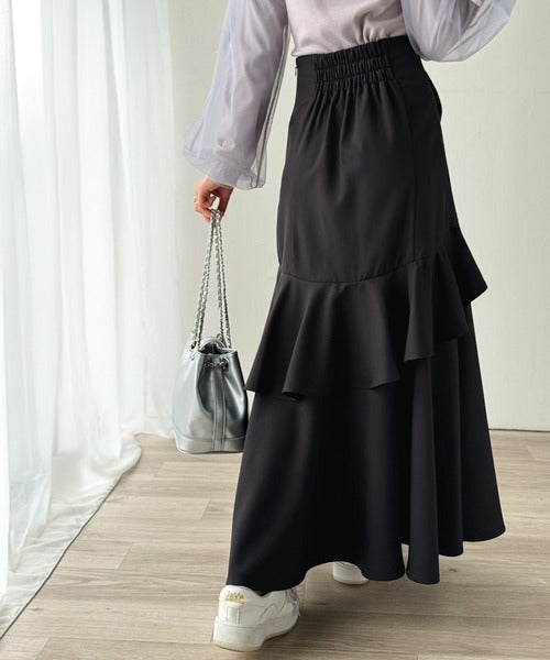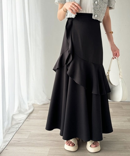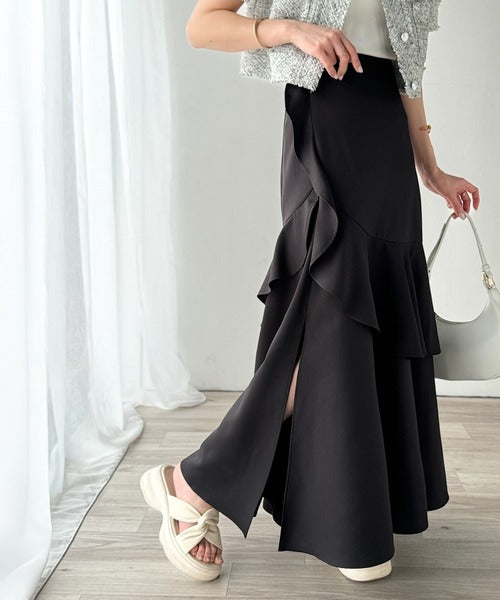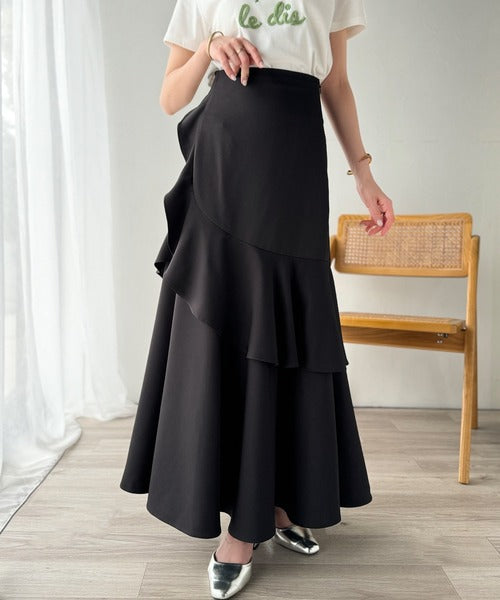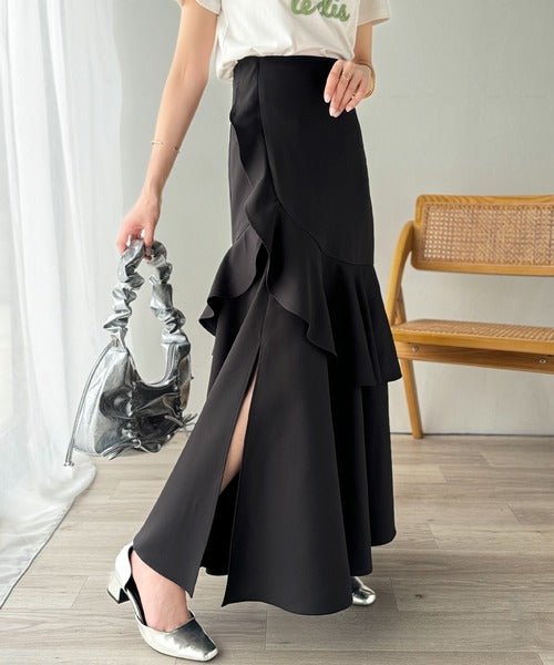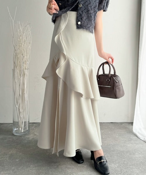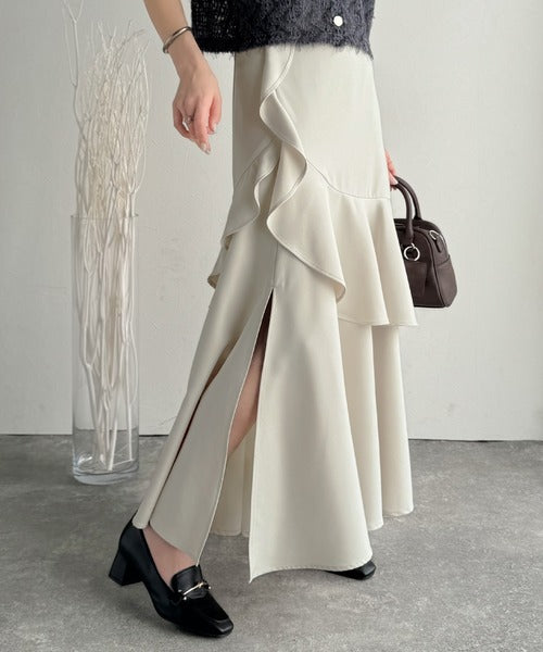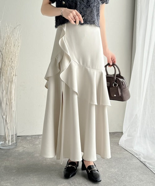 【mily bilet】上品に揺れるシルエットが美しい。スリット入りアシメフリルスカート(ロング) mi1019092