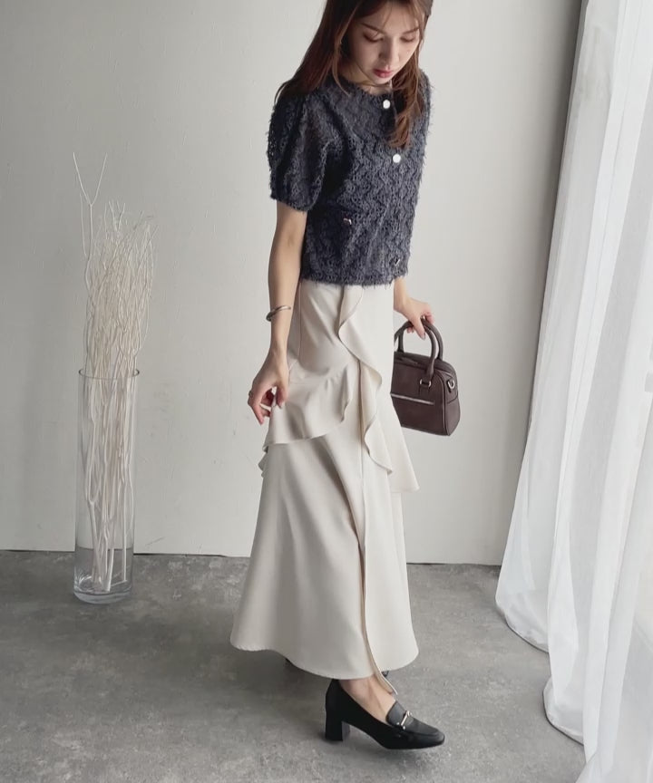 アシンメトリーにたっぷり施されたフリルが、動くたびに優雅に揺れ、