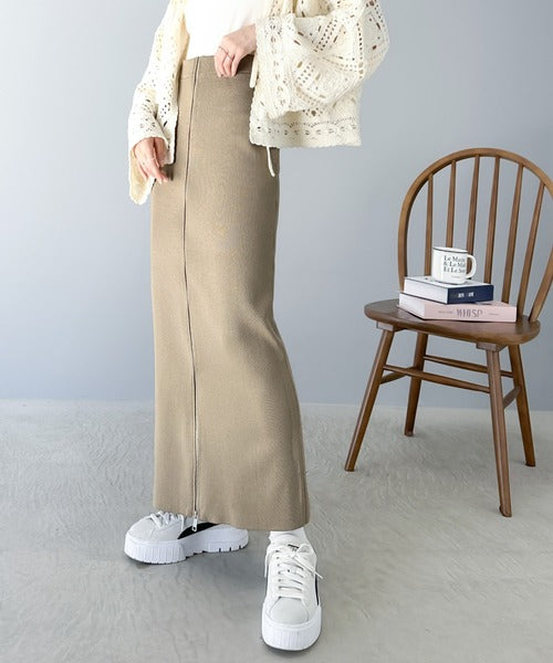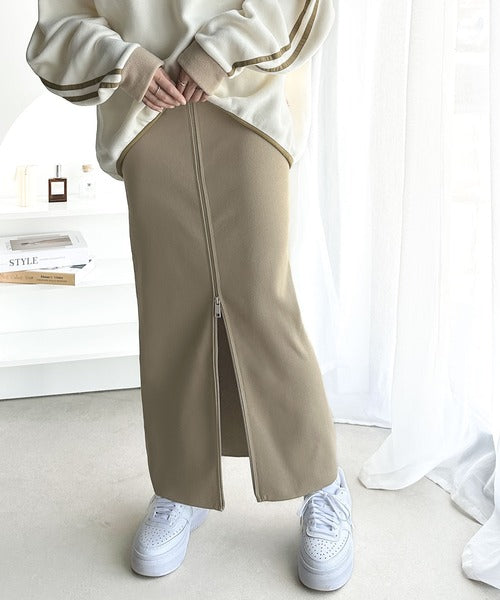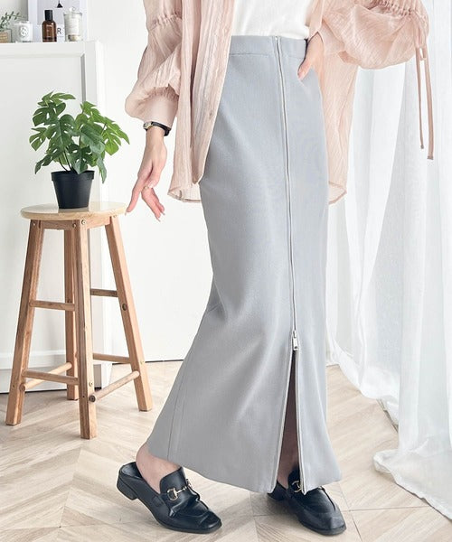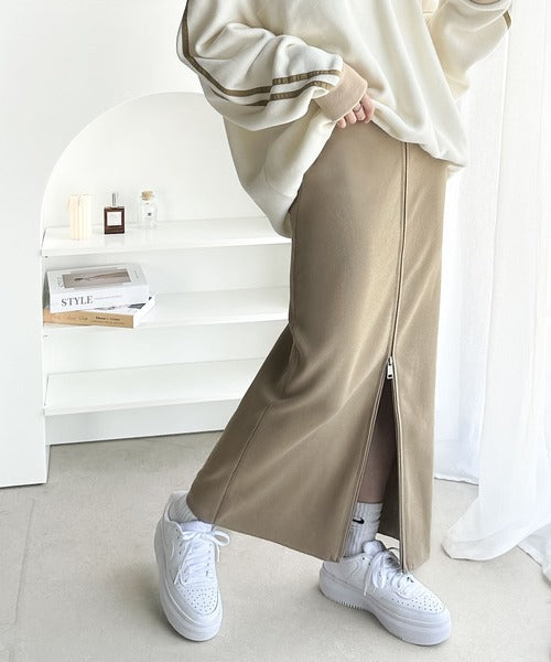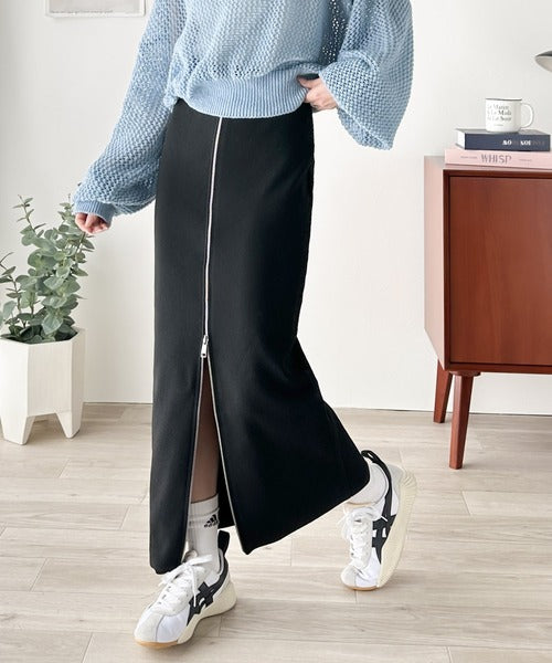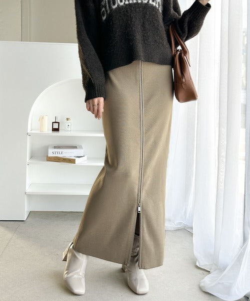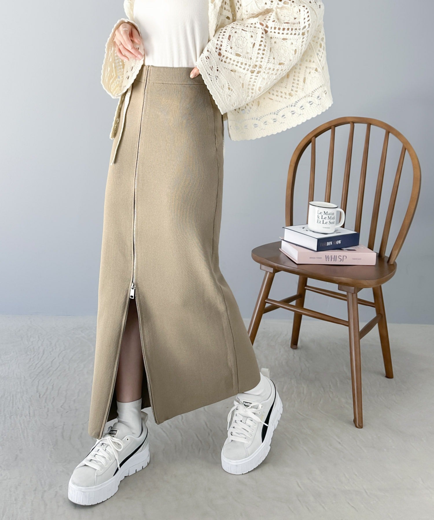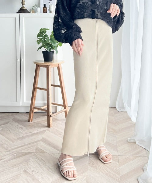 ベーシックなシルエットのスカートに、トレンド感のあるファスナー使いがポイント。