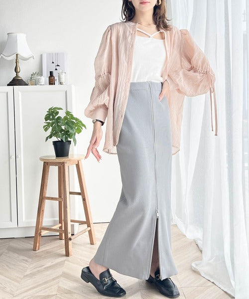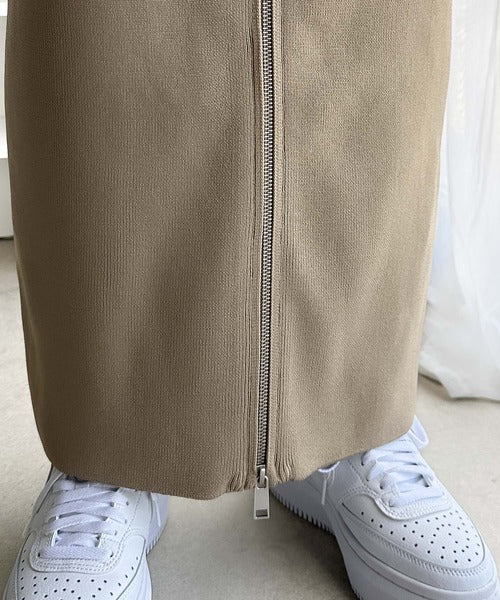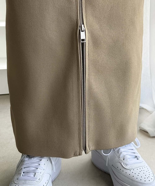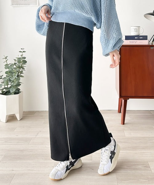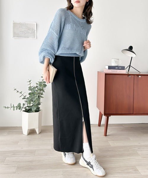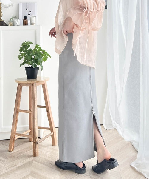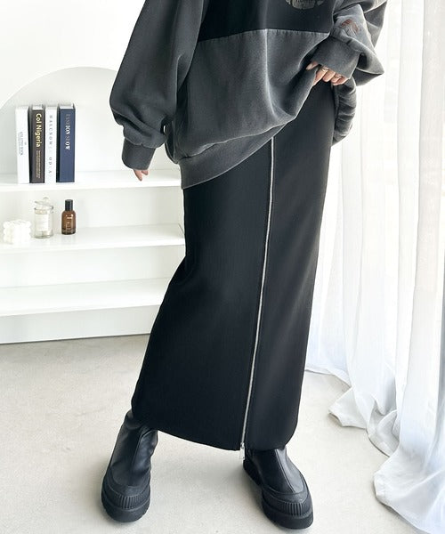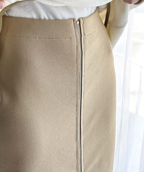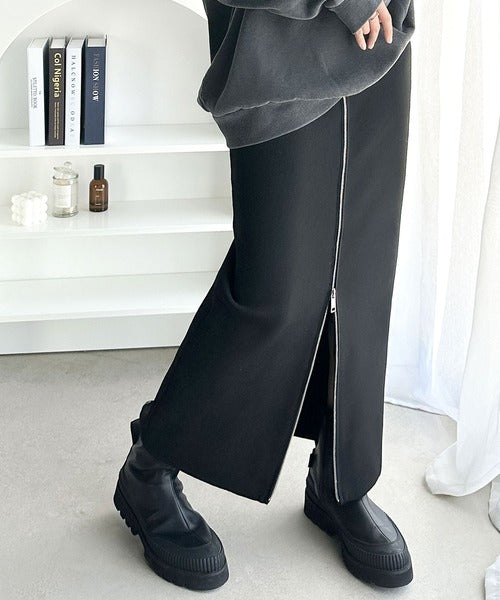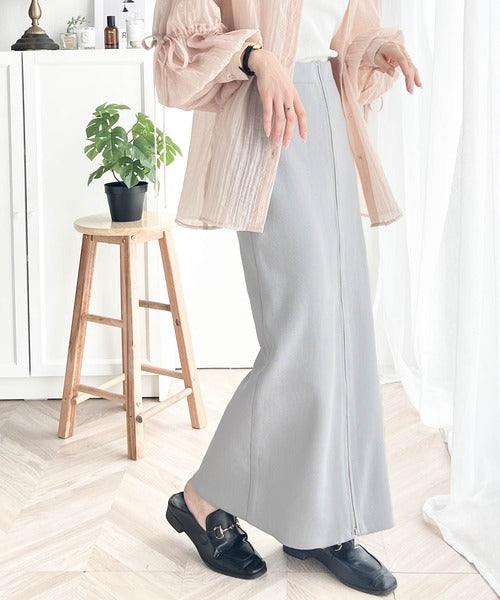 ベーシックなシルエットのスカートに、トレンド感のあるファスナー使いがポイント。