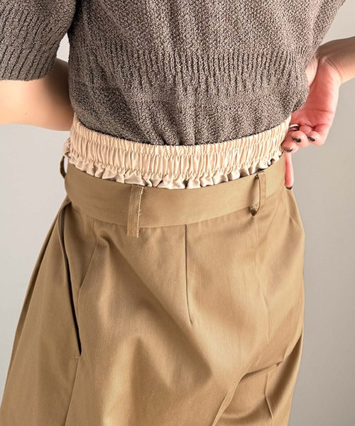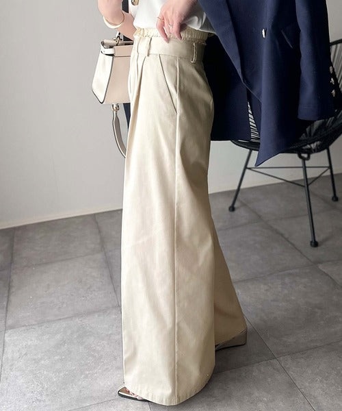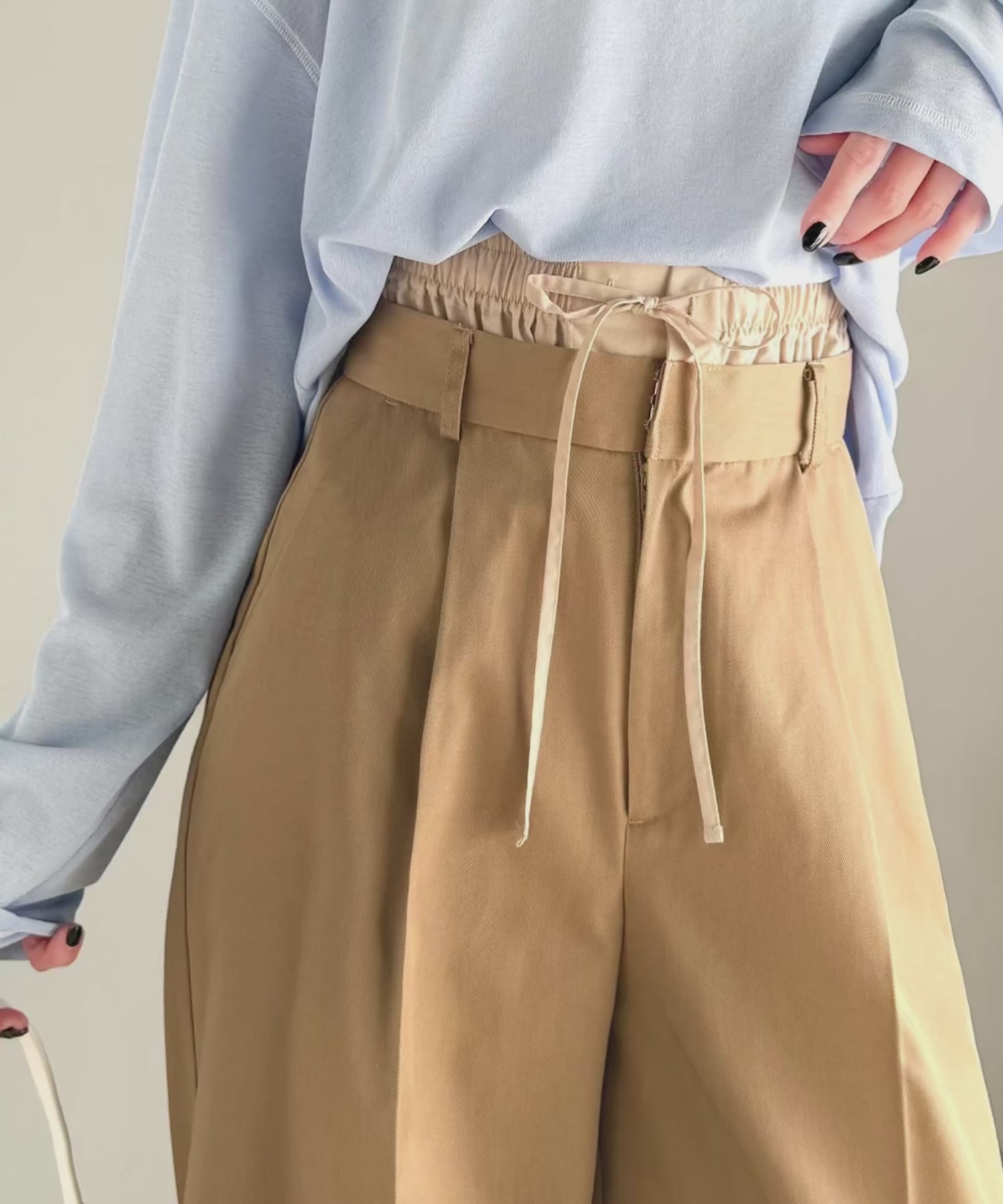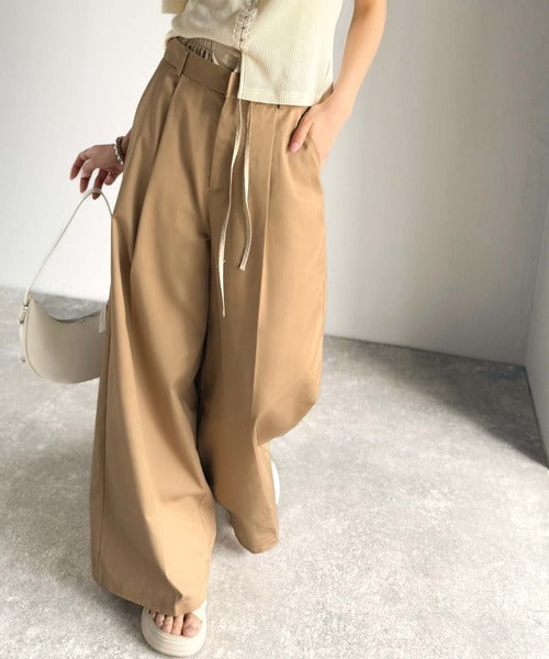 美シルエットの優秀パンツ♪Wベルト異素材スラックスワイドパンツ ce0940219