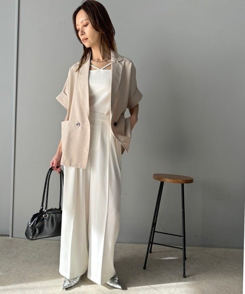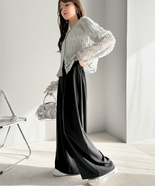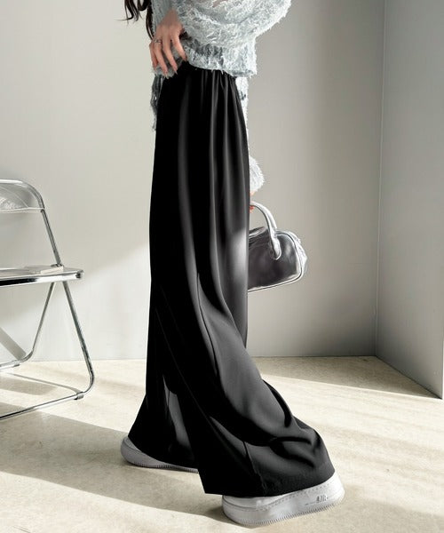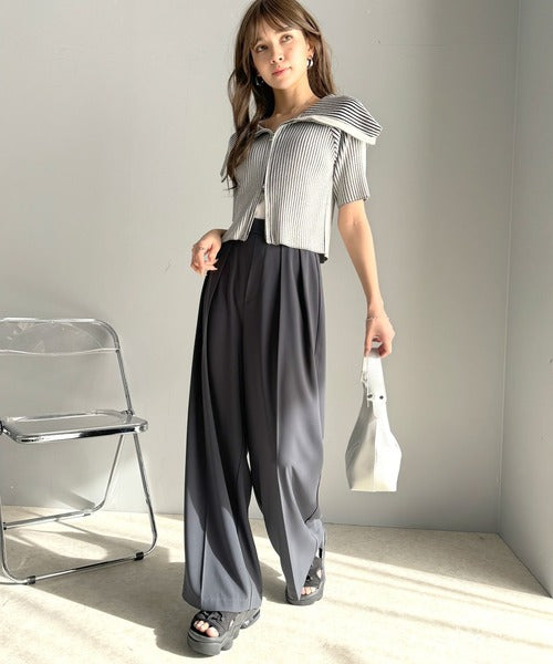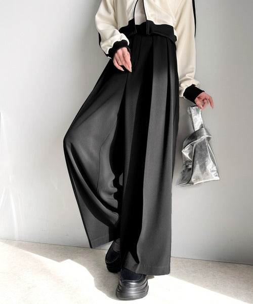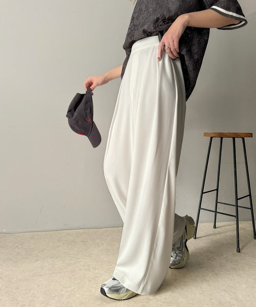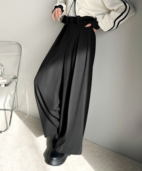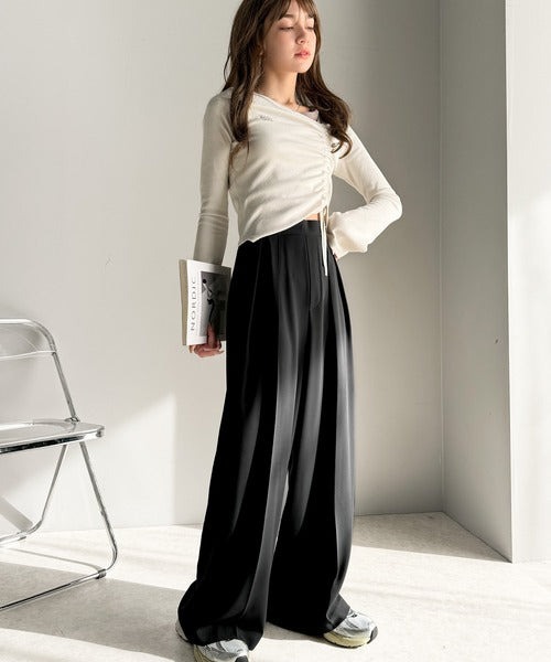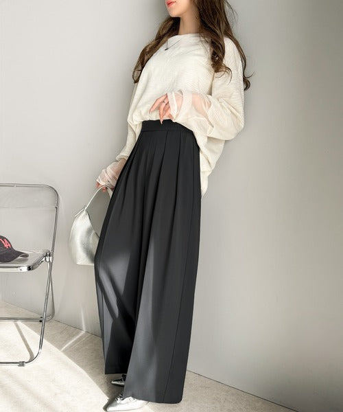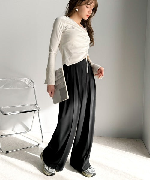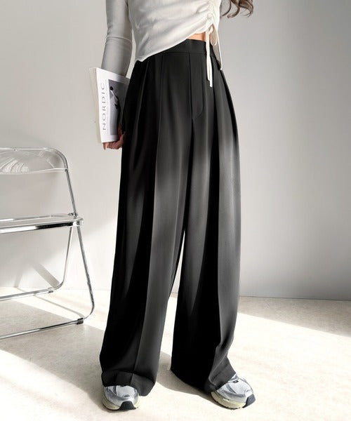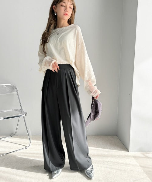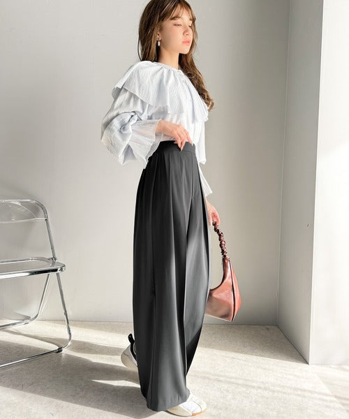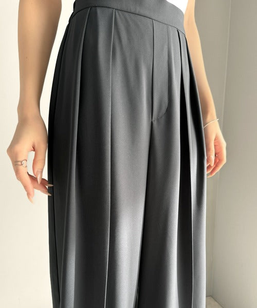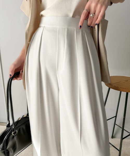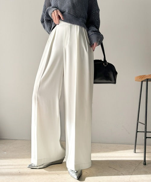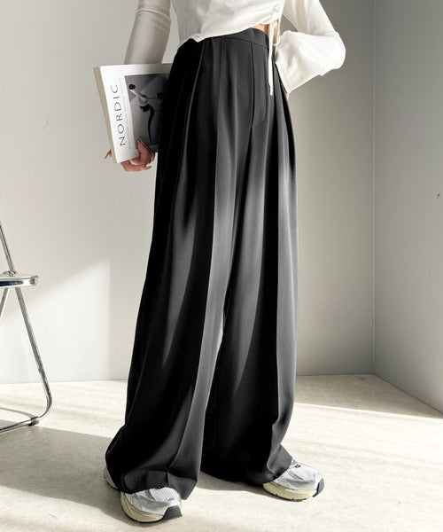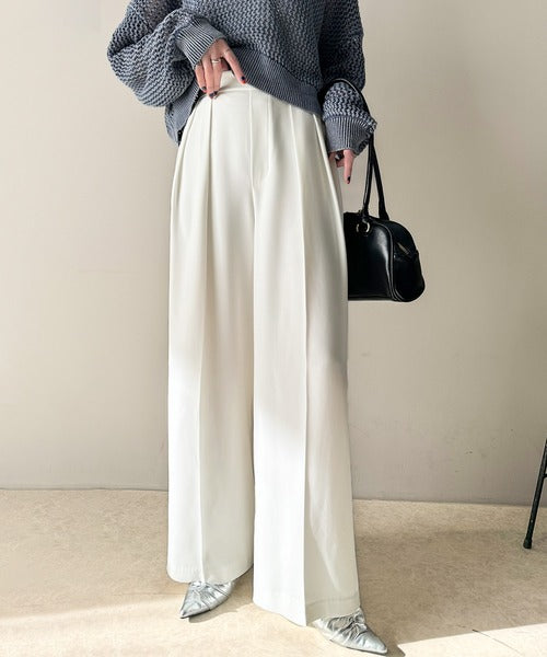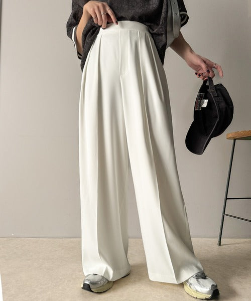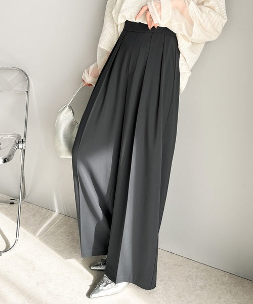 トレンドのハイウエストデザインに深めの2タックを施したワイドパンツ。