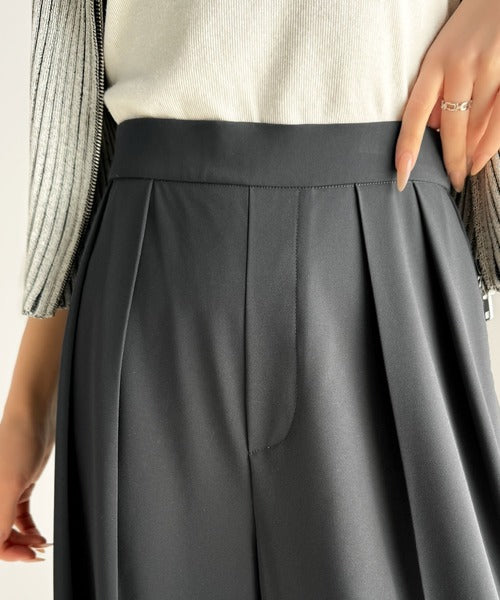 すっきりシルエット。防シワ効果素材2タックハイウエストワイドパンツ ce0940222