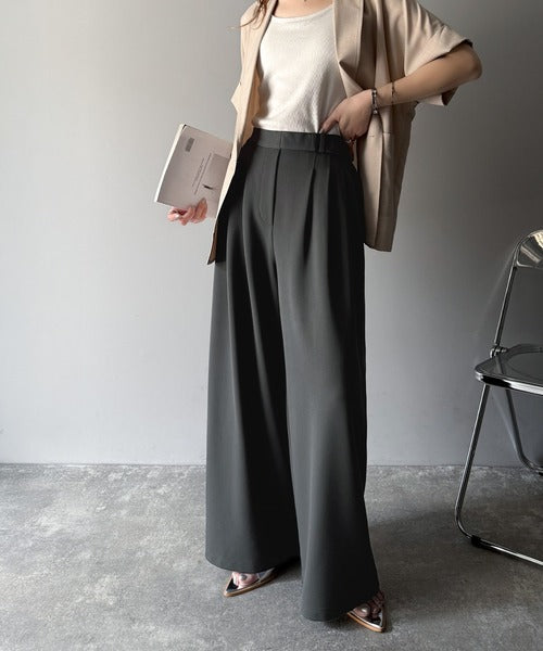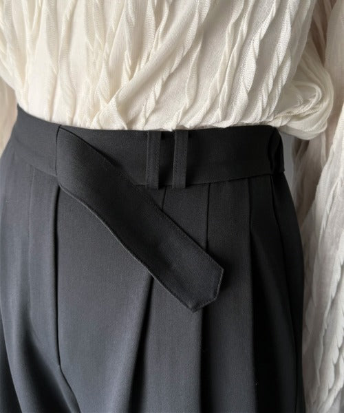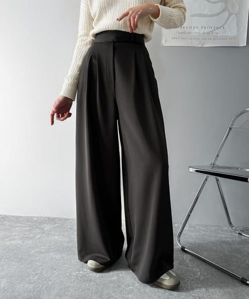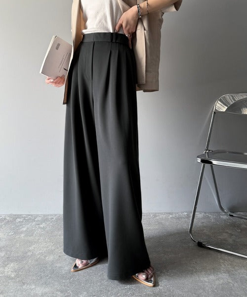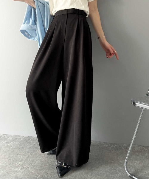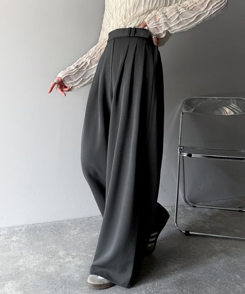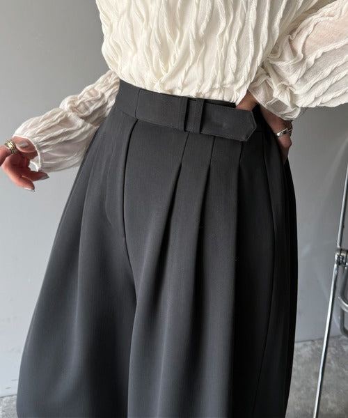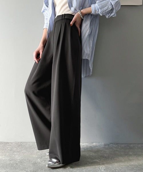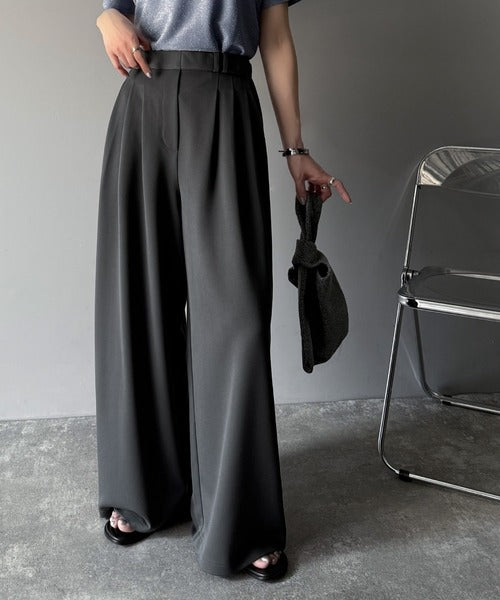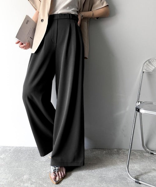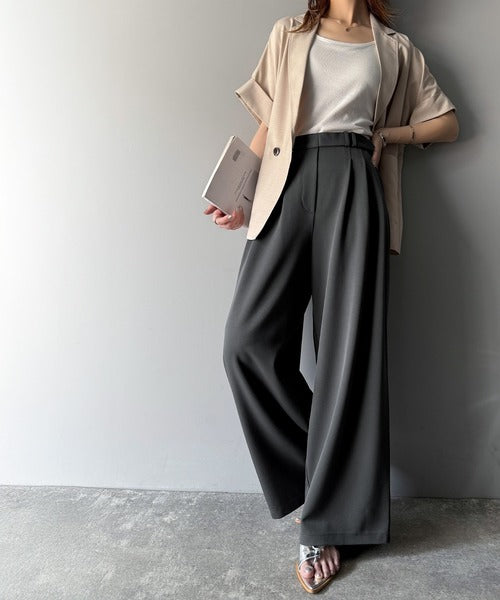 穿くだけで即キレイ見え。サイドベルトデザイン3タックストレッチスラックスパンツ ce1020228