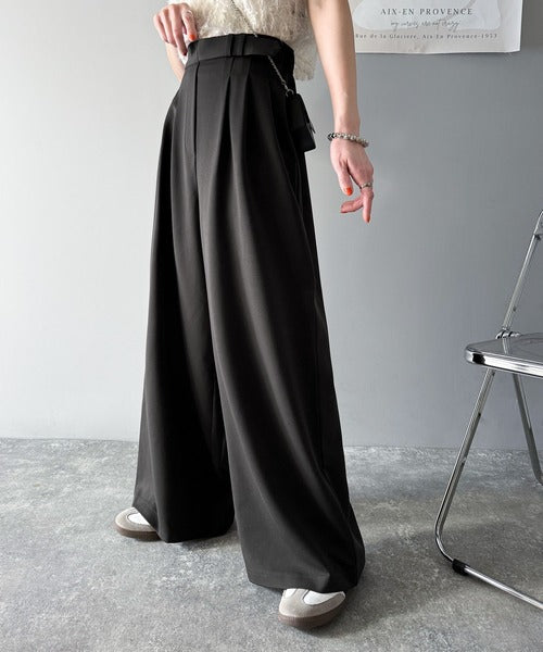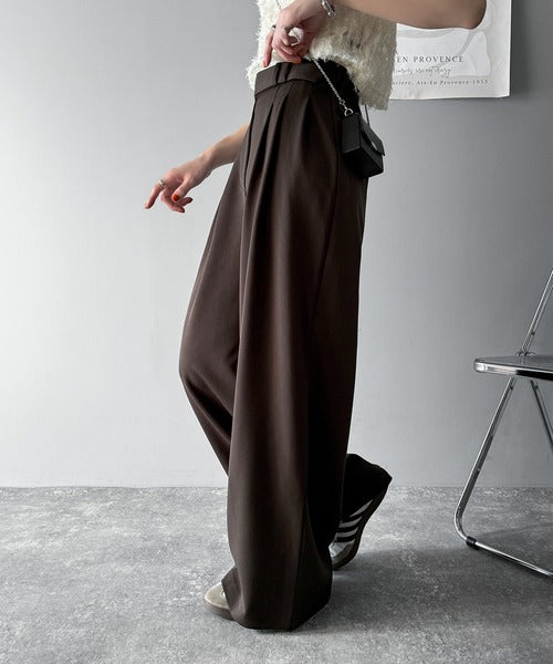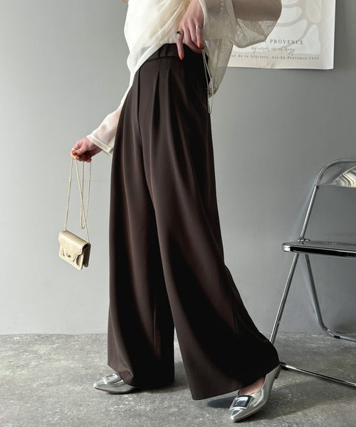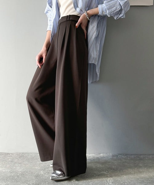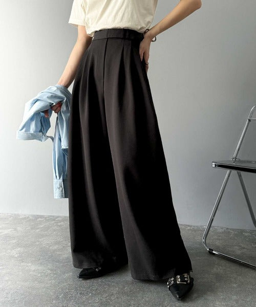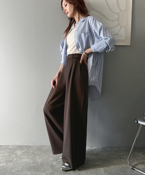 ウエストゴム&ベルトで快適な穿き心地のワイドスラックス。