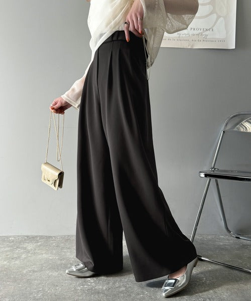 おしゃれ度高めなワイドシルエットスラックスパンツ。