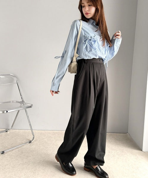 フロントのタックが綺麗に裾に向かって縦に入ることで、