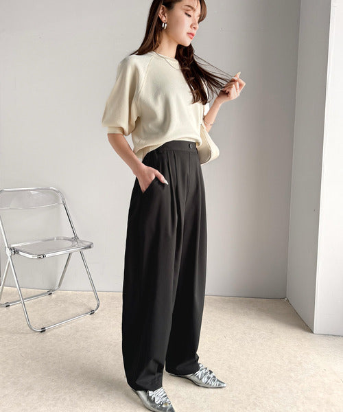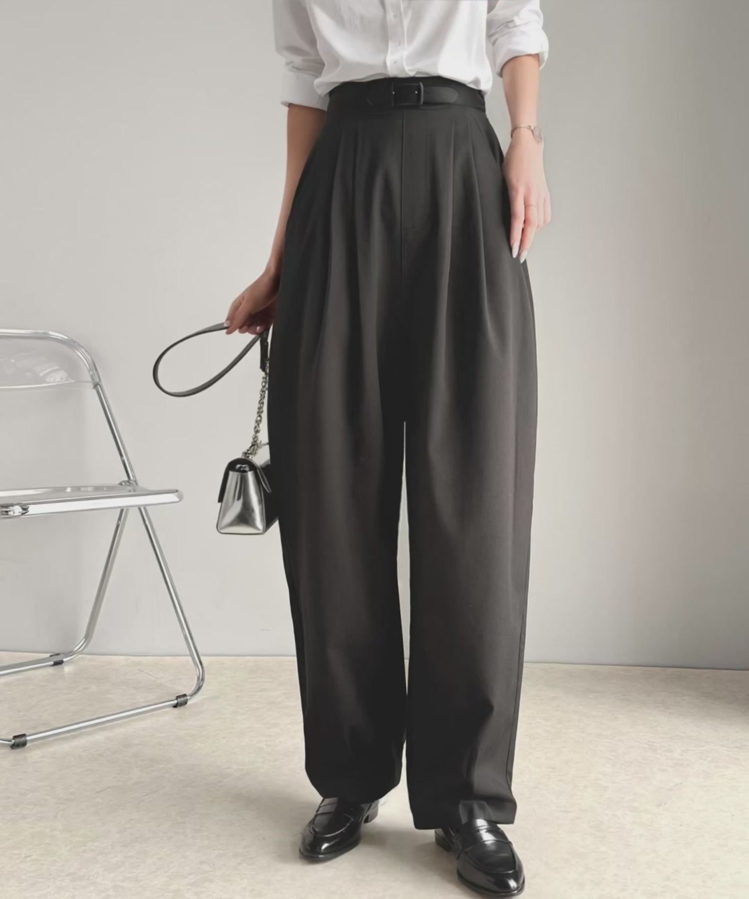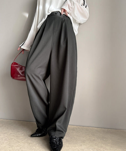 脚を美しく綺麗に見せるカーヴィテーパードパンツ。