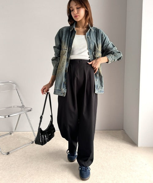 ・脚長視覚効果!裾にかけてスッキリとしたテーパードデザイン