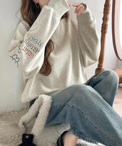 ハンドメイド風刺繍に釘付け。前後2wayランダム袖刺繍裏起毛スウェット ce1050222