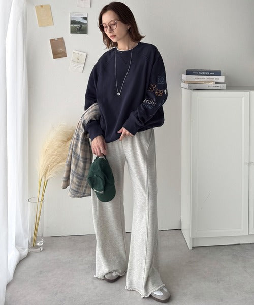 肌触りの良い裏起毛スウェットはロングシーズン着回せるアイテム。
