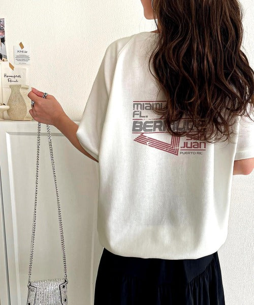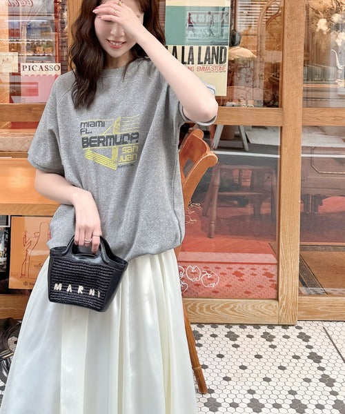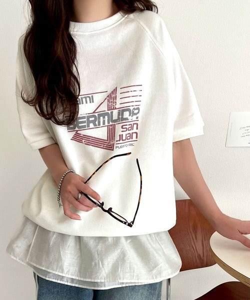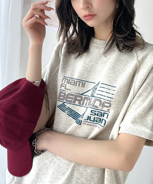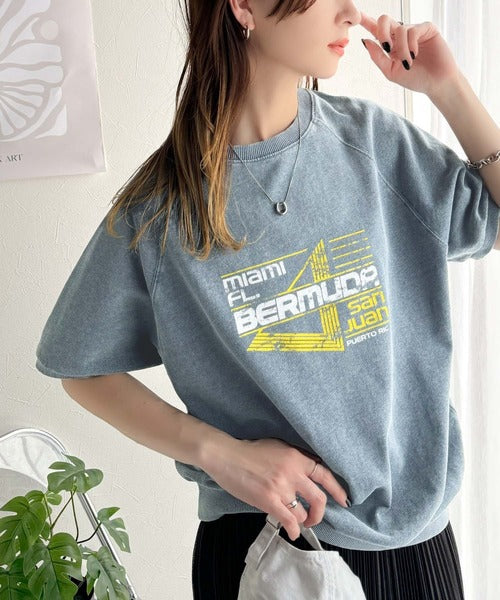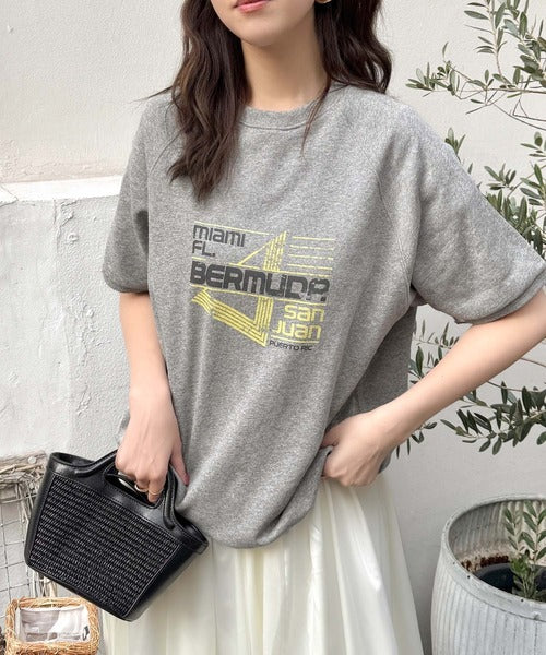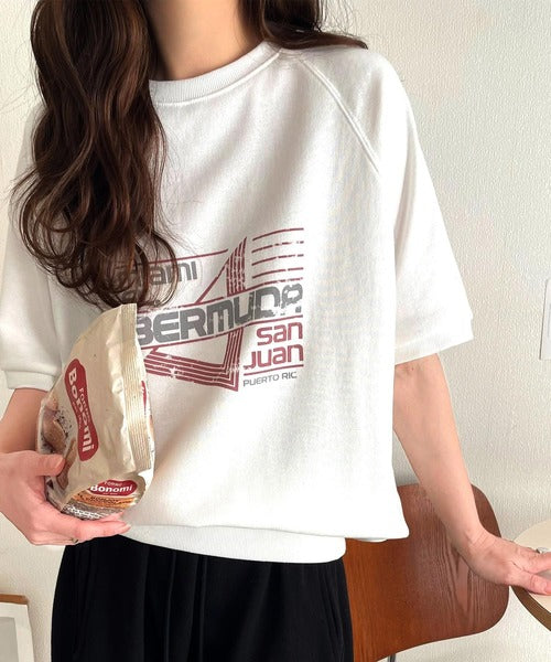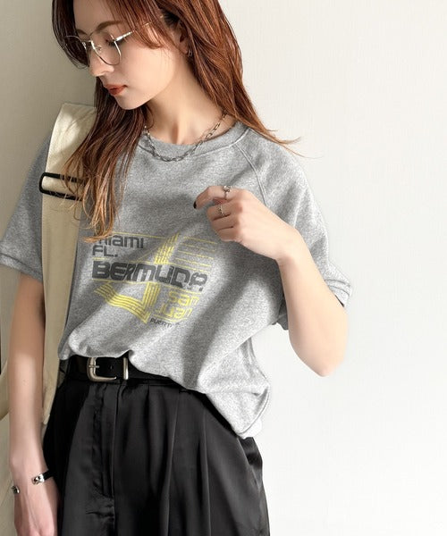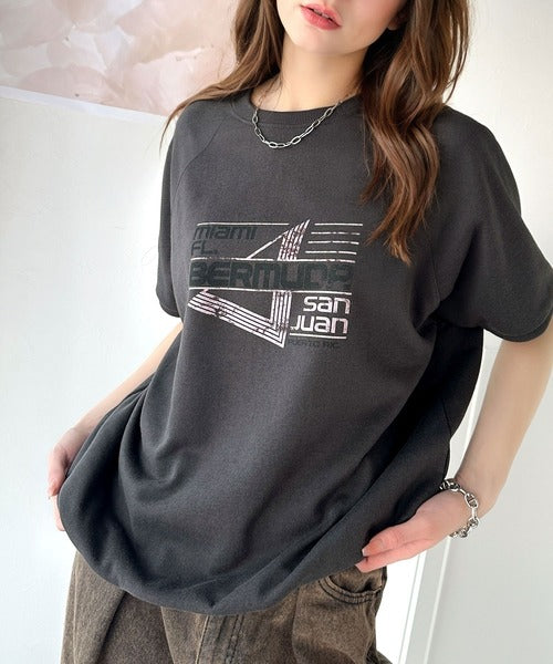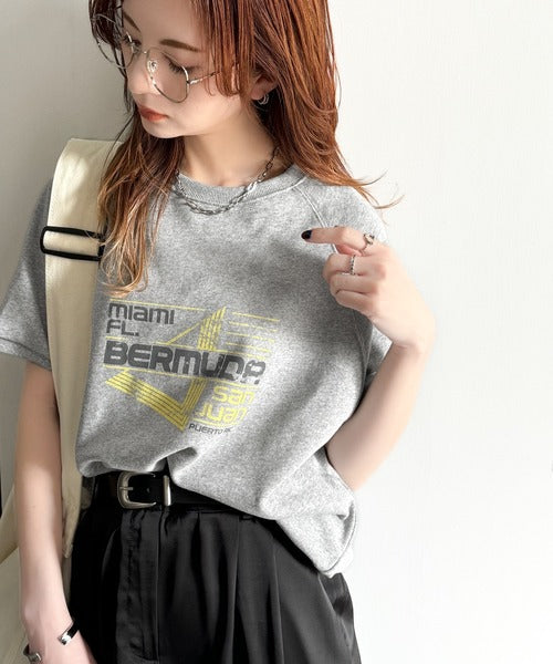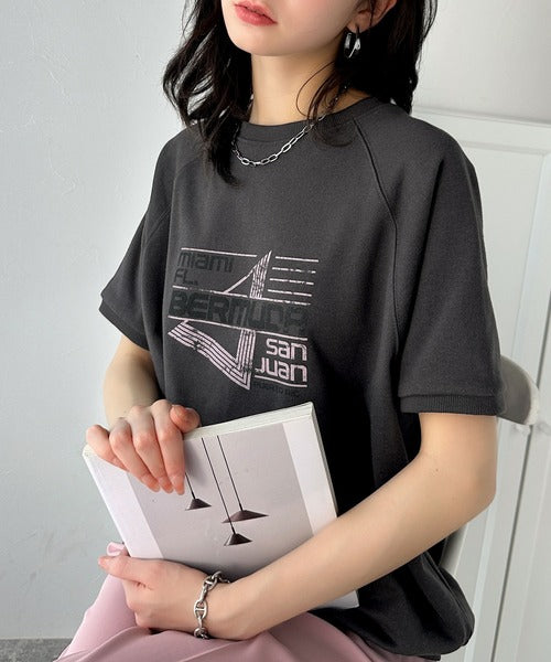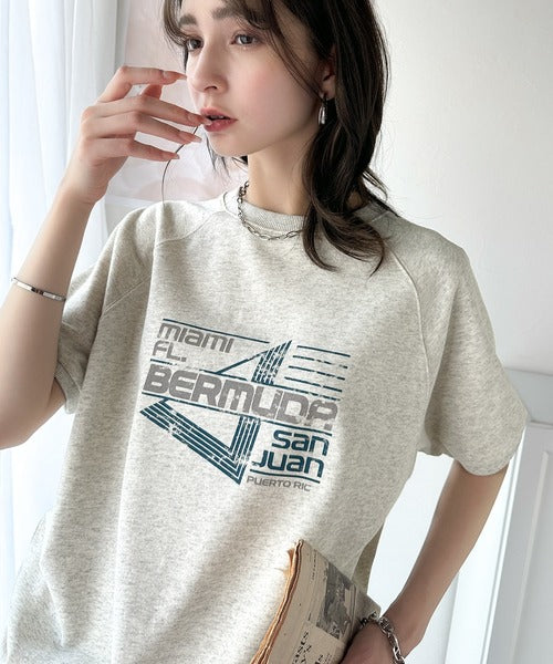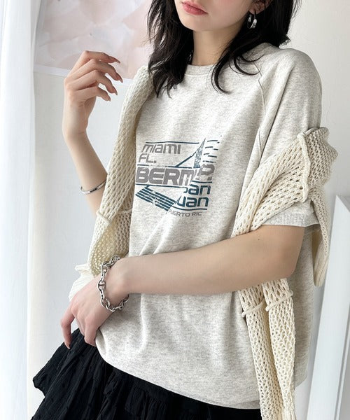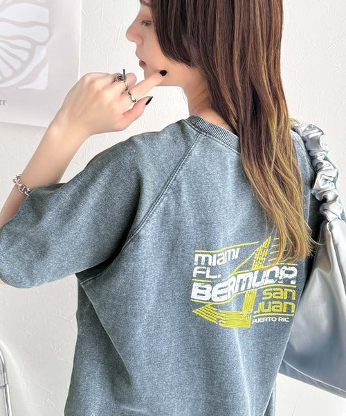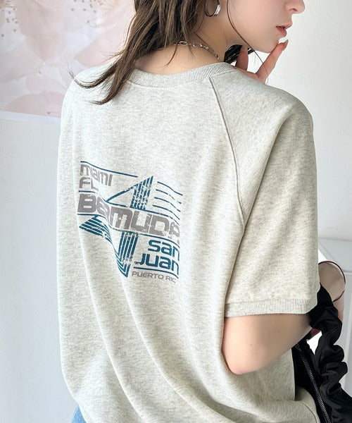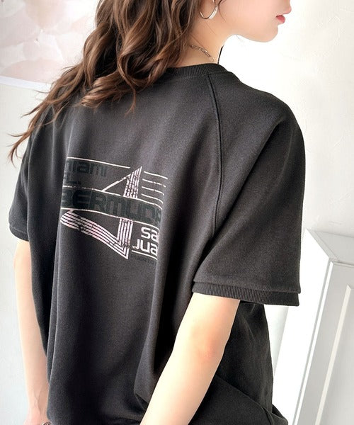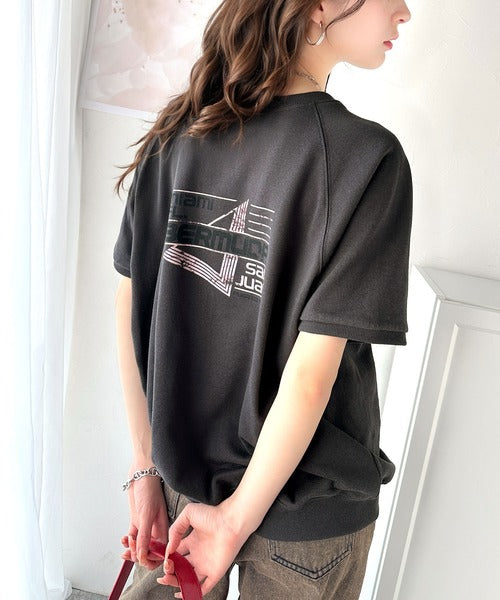 こなれカジュアルの新定番。前後2wayヴィンテージ風グラフィックプリント裏毛スウェットトップス(半袖) ce1260366