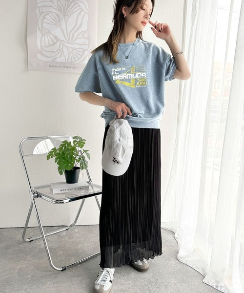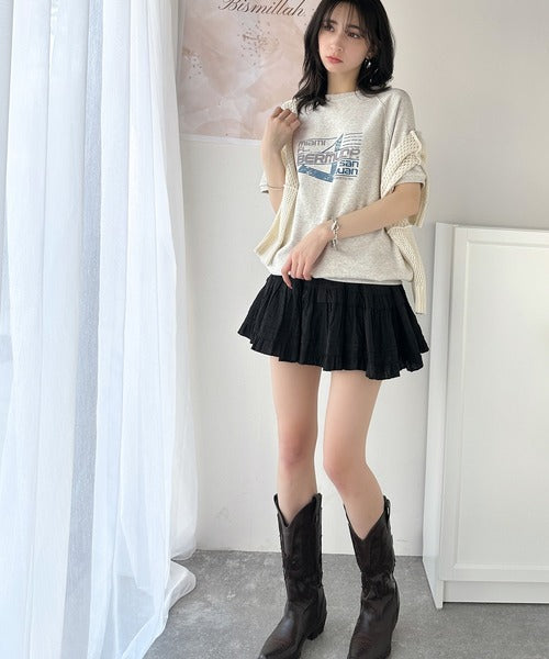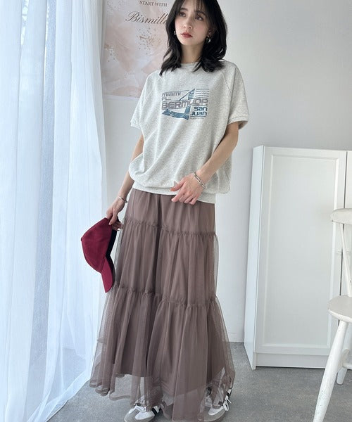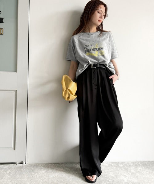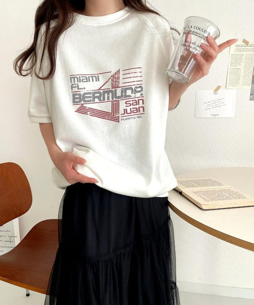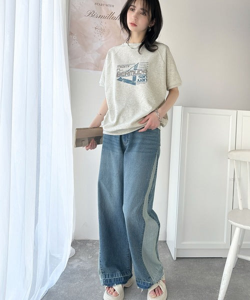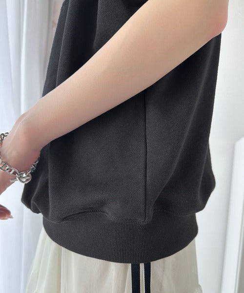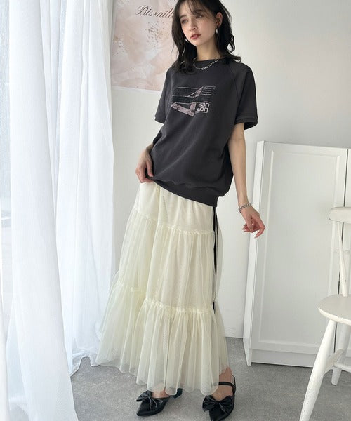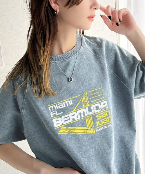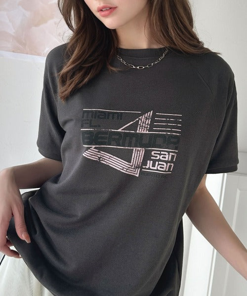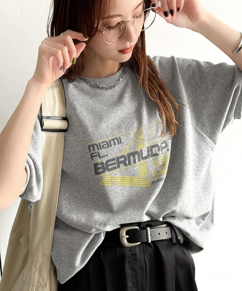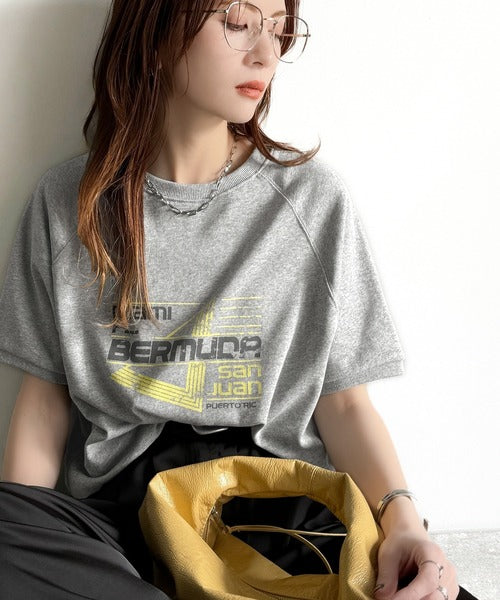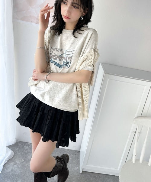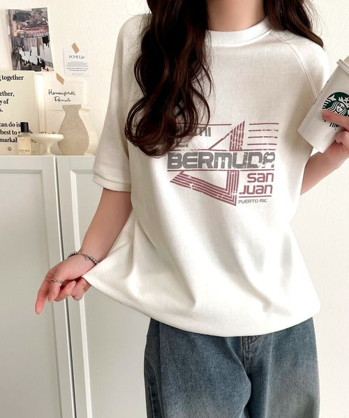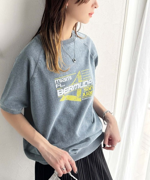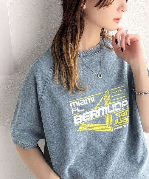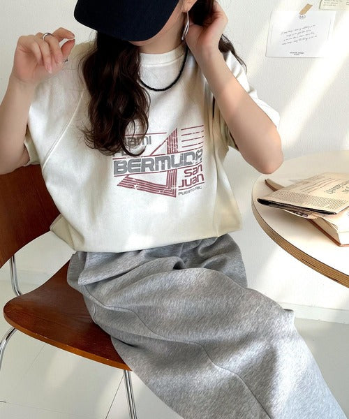 こなれカジュアルの新定番。前後2wayヴィンテージ風グラフィックプリント裏毛スウェットトップス(半袖) ce1260366