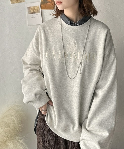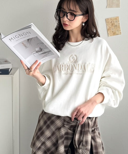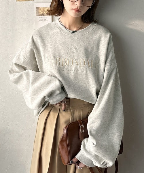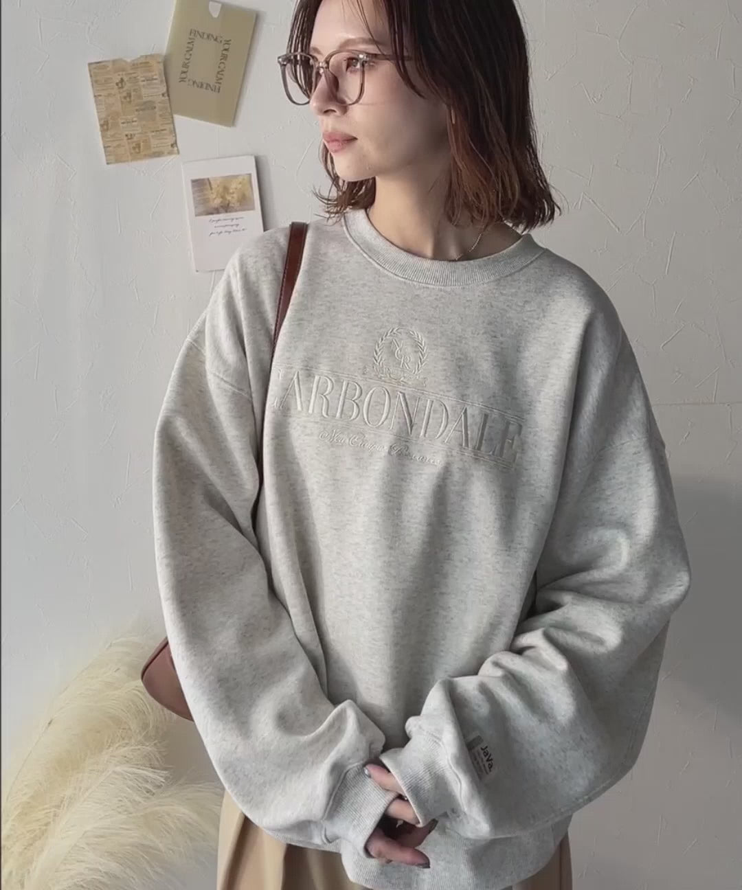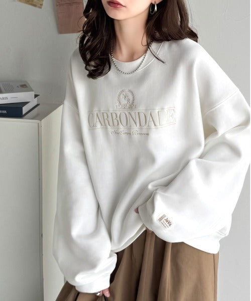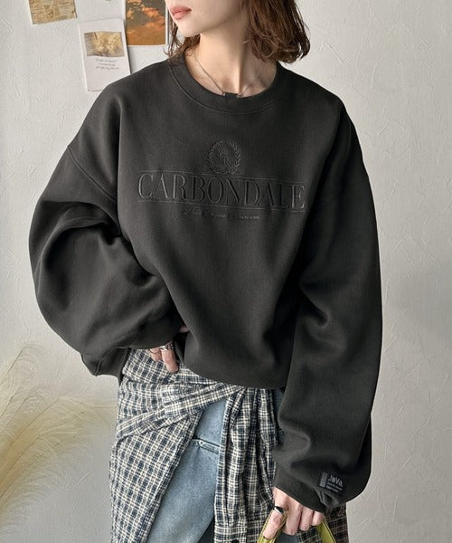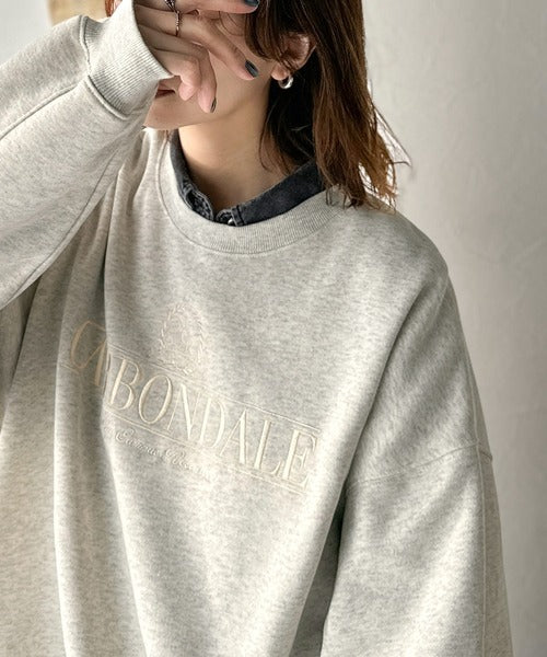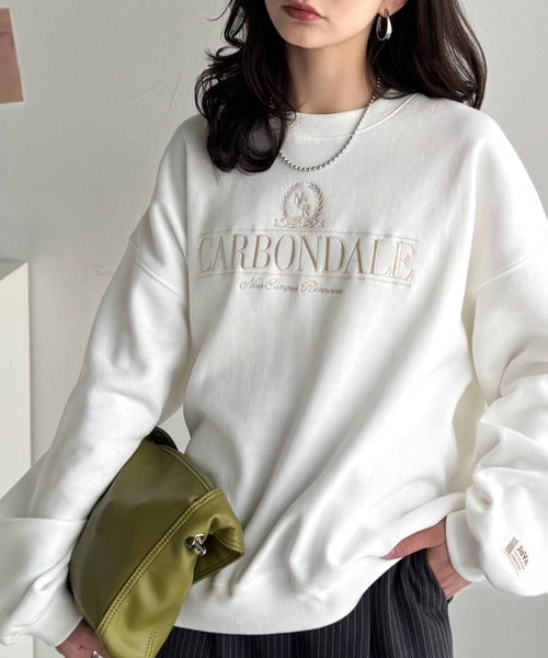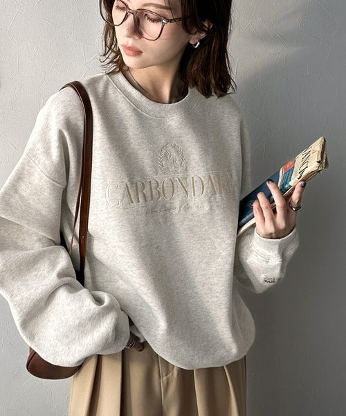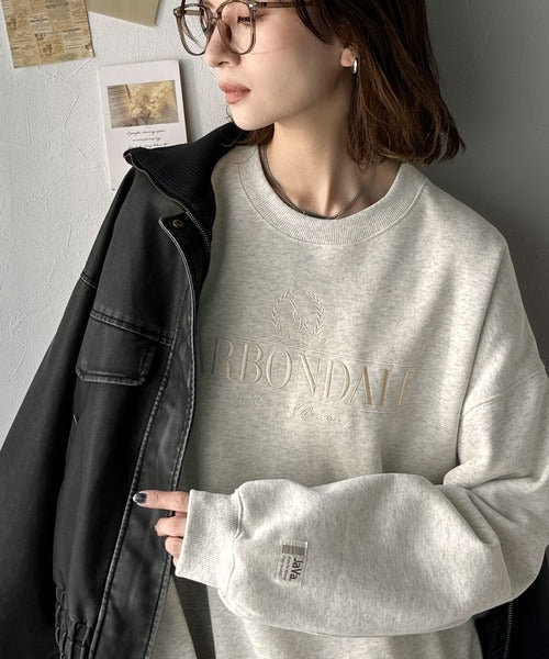 繊細な立体刺繍ロゴが印象的なカレッジスウェット。
