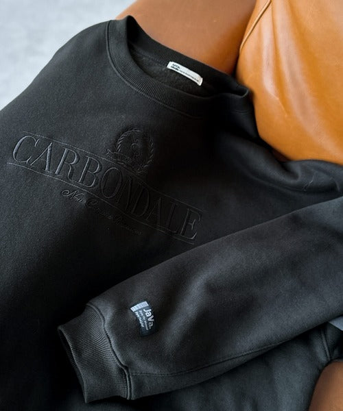 《JaVa ジャバコラボ》微配色刺繍の上品ロゴデザイン。刺繍カレッジロゴ裏起毛スウェット jv1330040