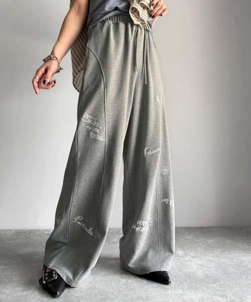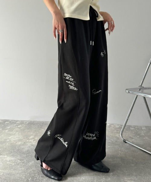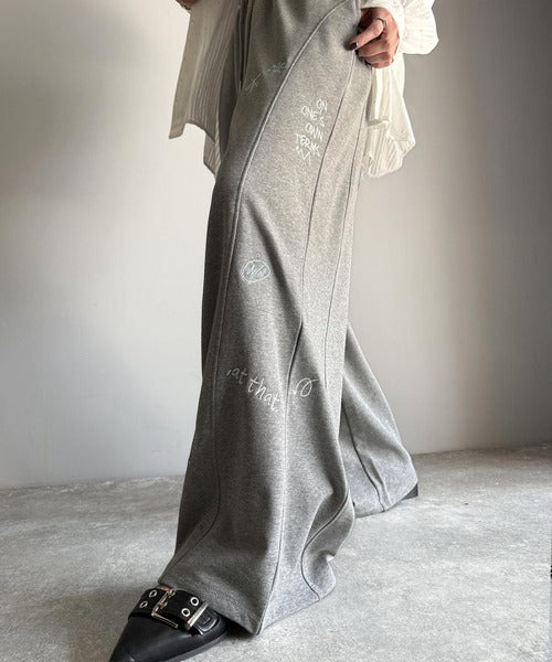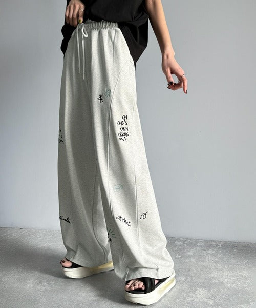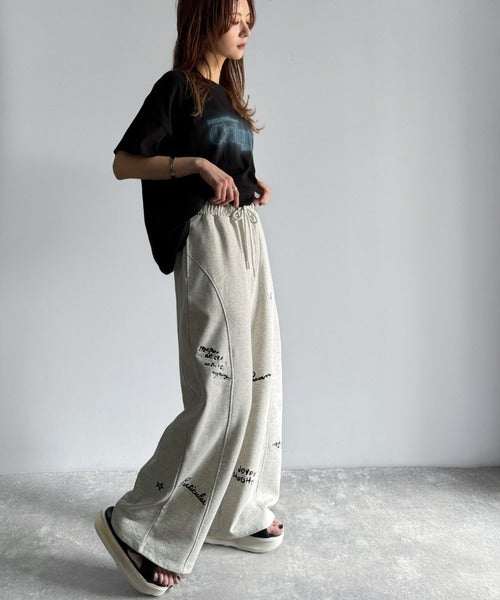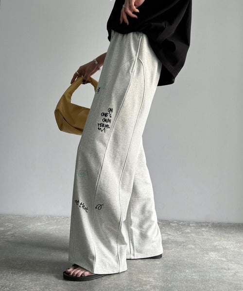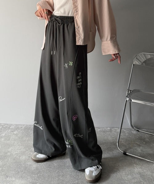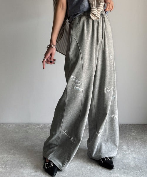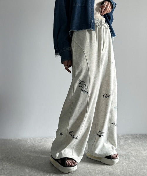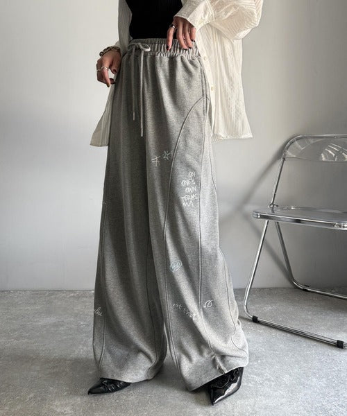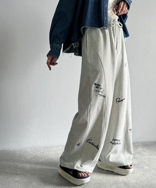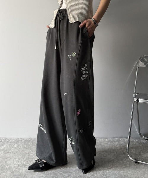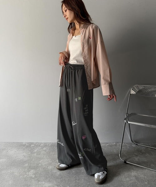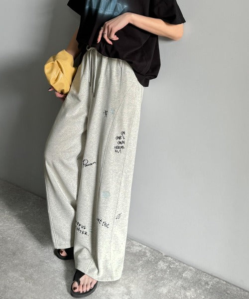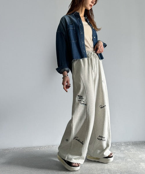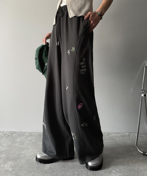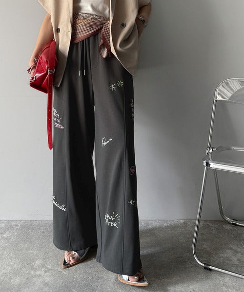 今季のイチオシ!ランダム刺繍裏毛スウェットワイドパンツ ce1260423