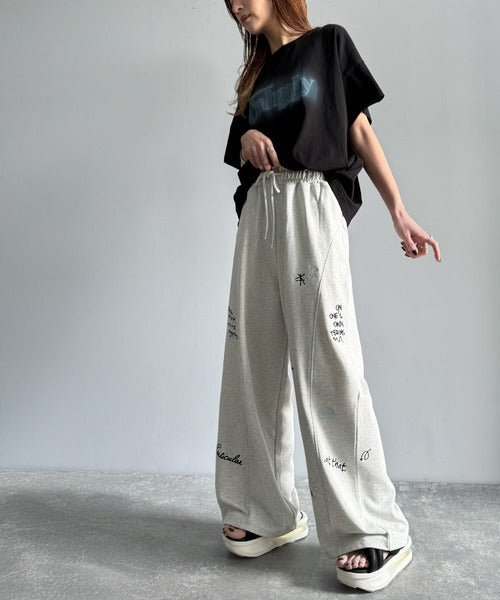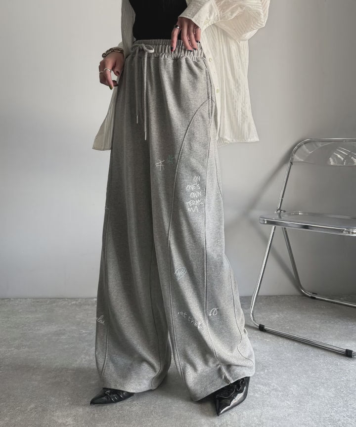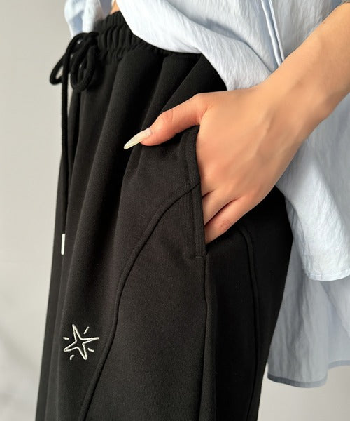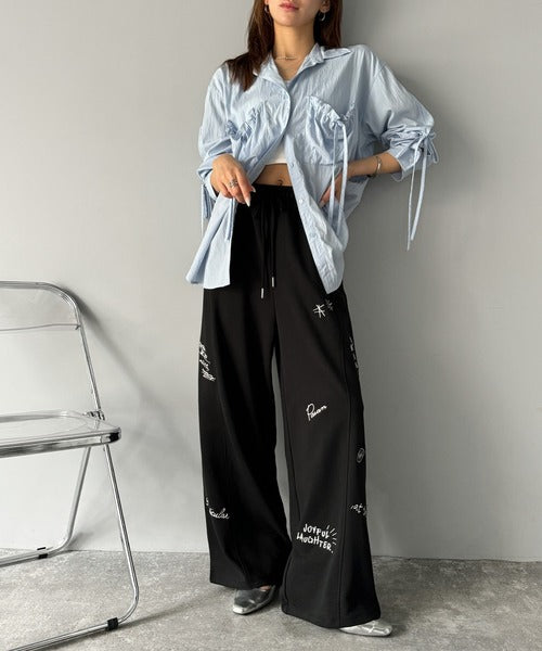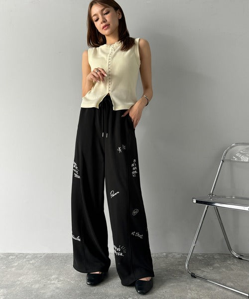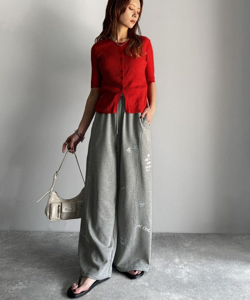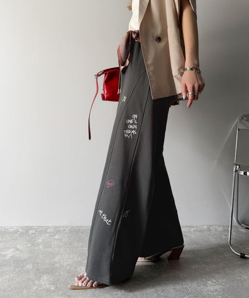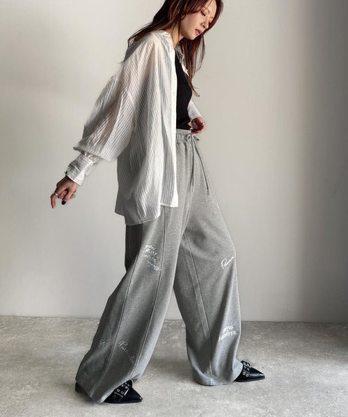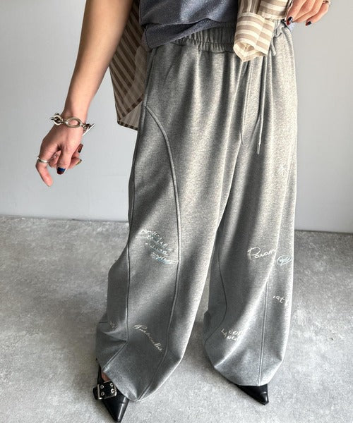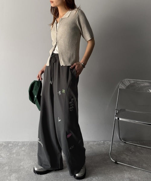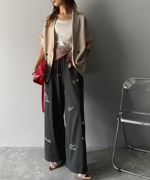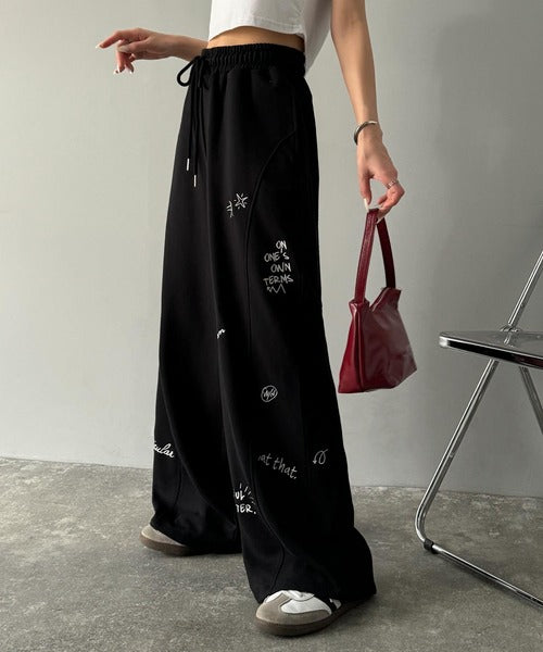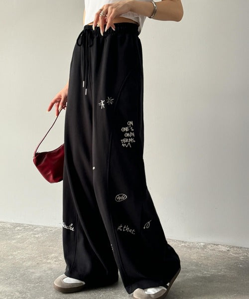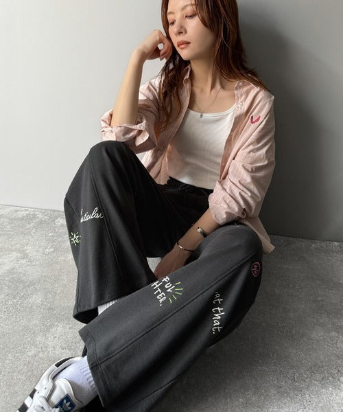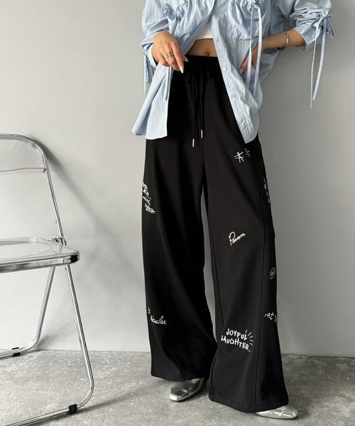 今季のイチオシ!ランダム刺繍裏毛スウェットワイドパンツ ce1260423