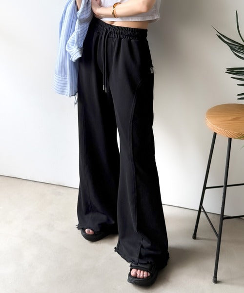 裾クラッシュ×裏毛素材のフレアパンツ。