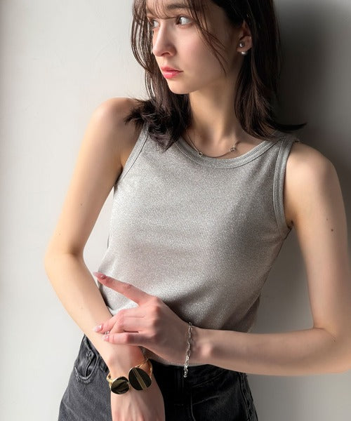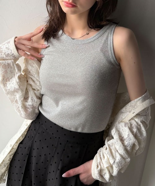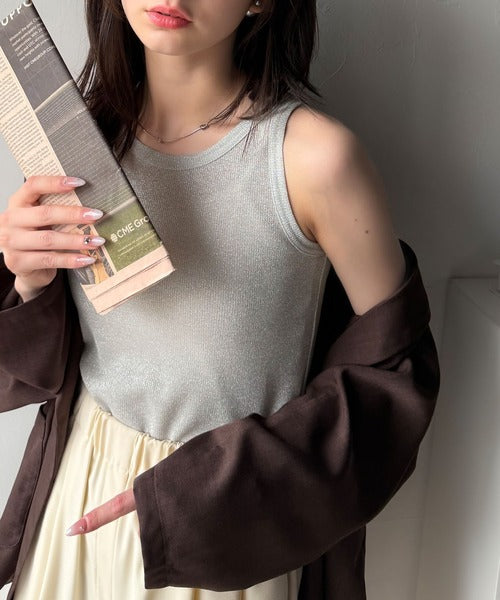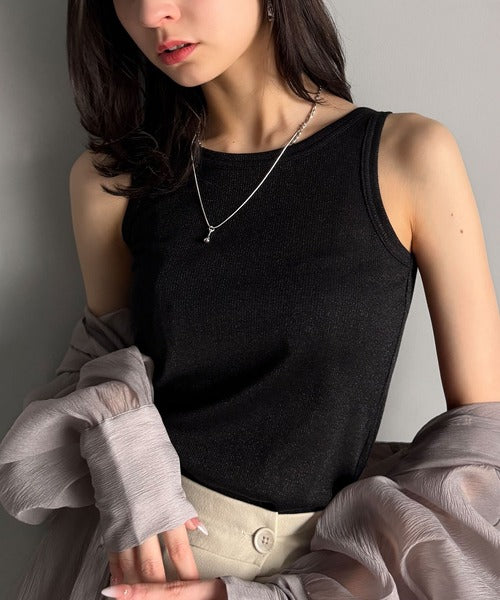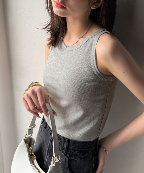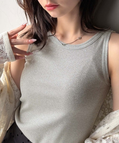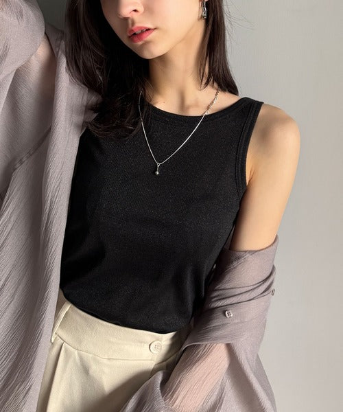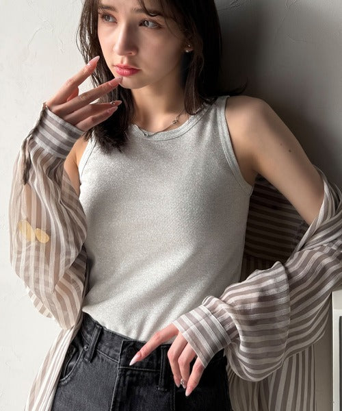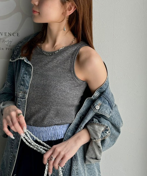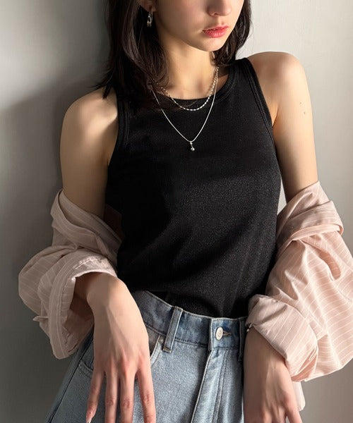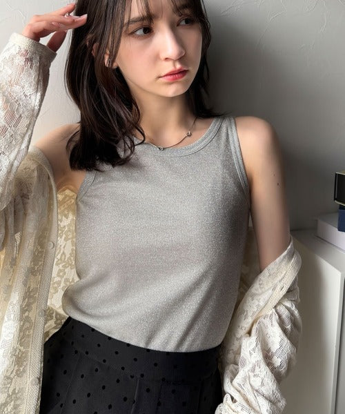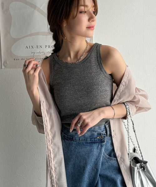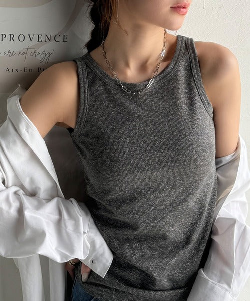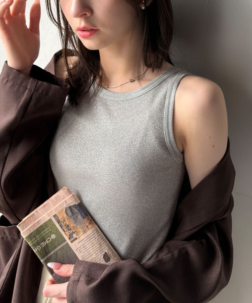 大人お洒落はさりげなくきらめくラメ◎ラメ入りアメスリテレコタンクトップ ce1110123