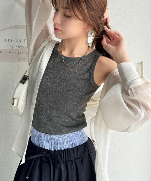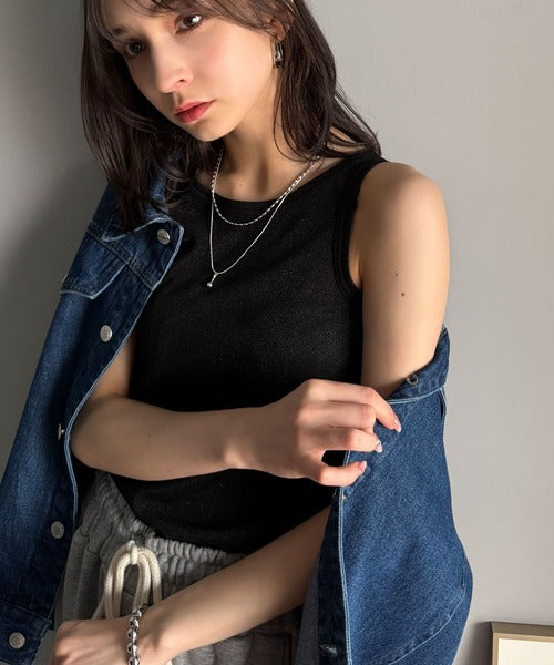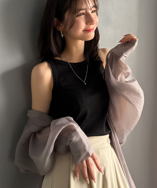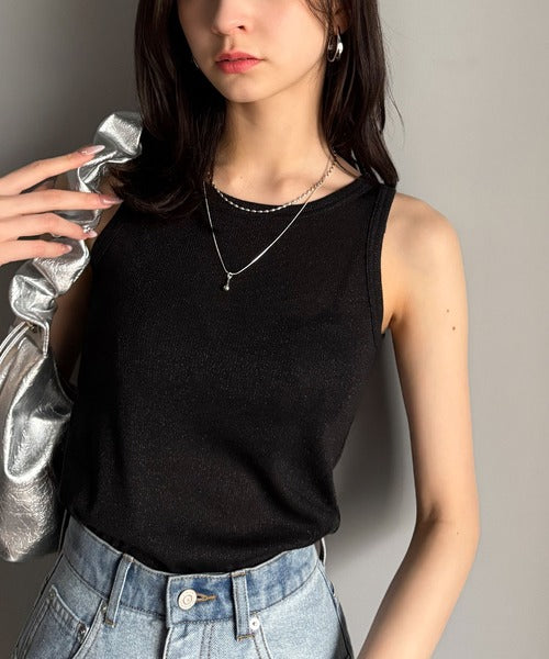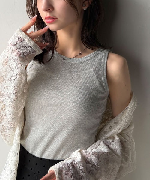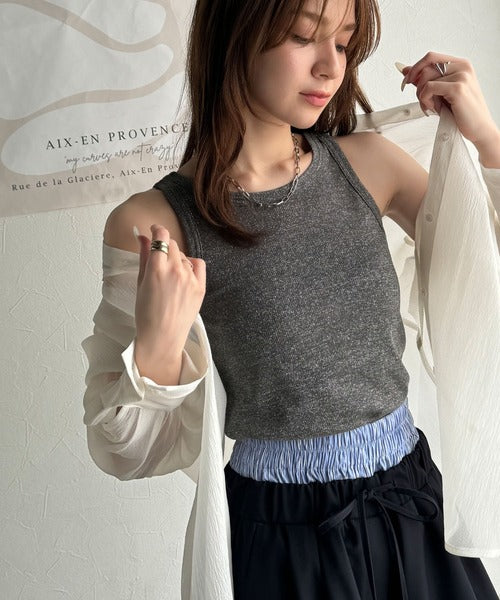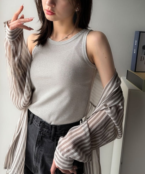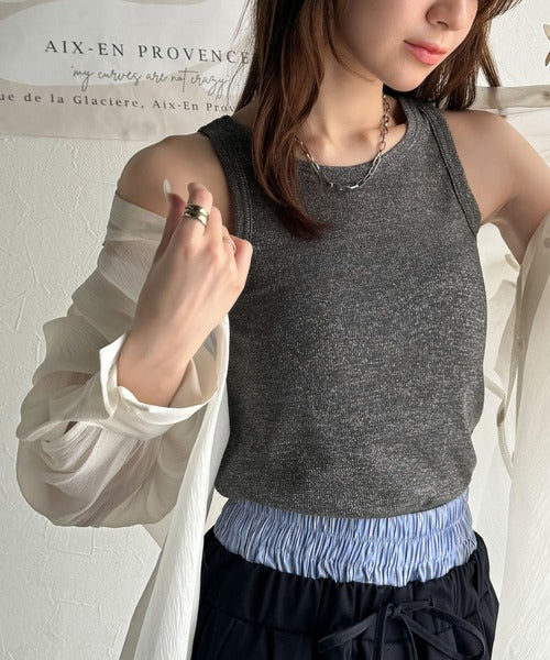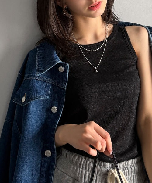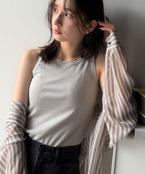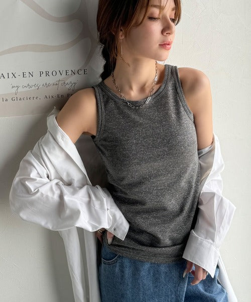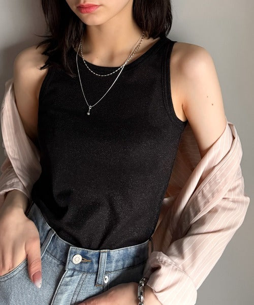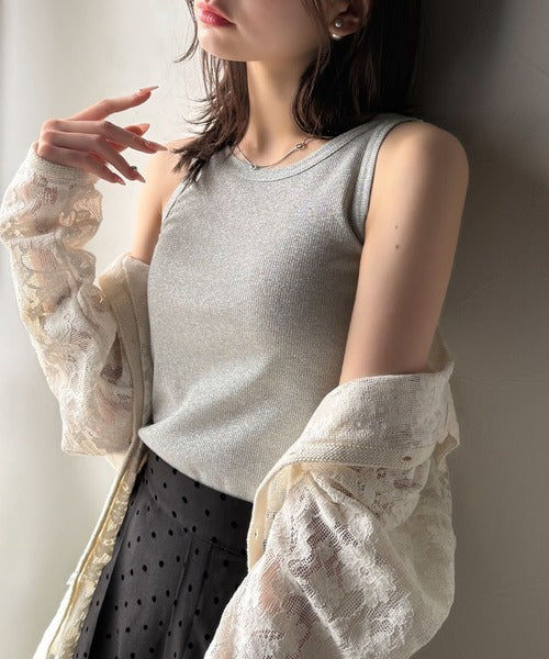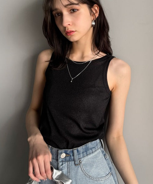 大人お洒落はさりげなくきらめくラメ◎ラメ入りアメスリテレコタンクトップ ce1110123