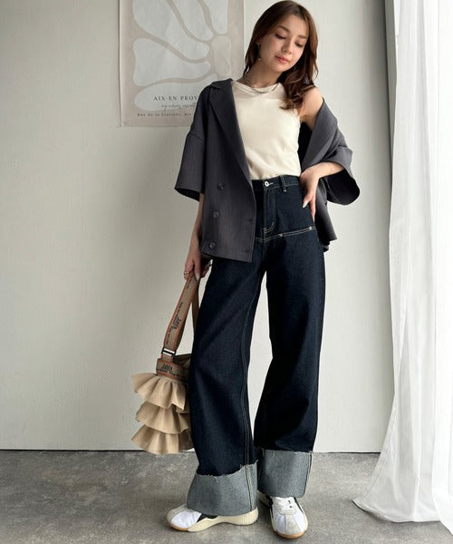カーブデニムやスウェットパンツなど様々なシルエットのボトムスとの相性も抜群♪