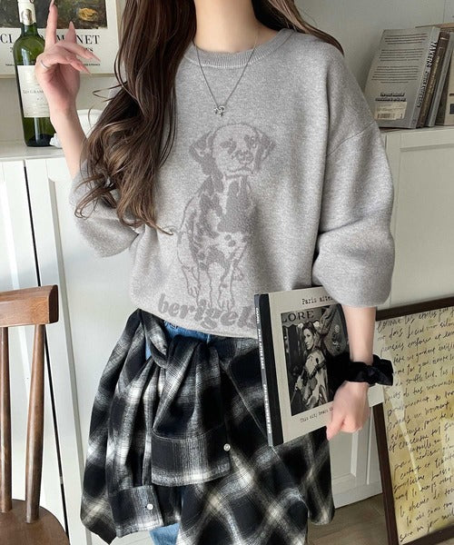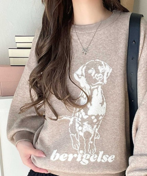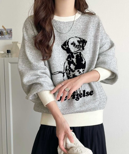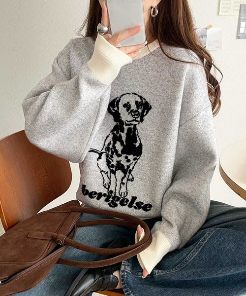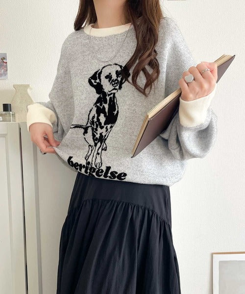 着心地抜群!大人かわいいスタイルに♪ダブルジャガード配色ダルメシアン柄ニット ce1050342