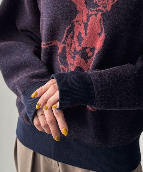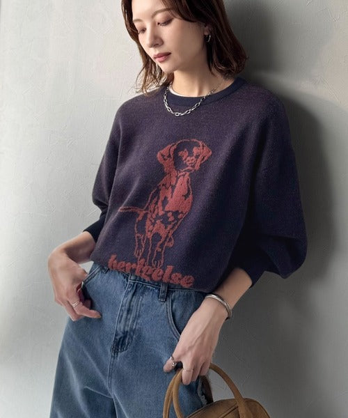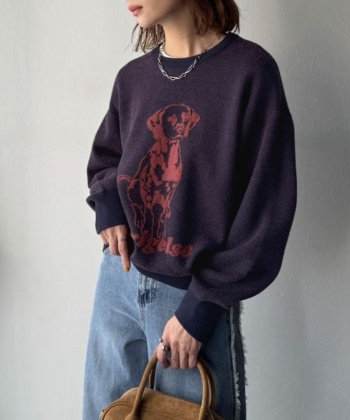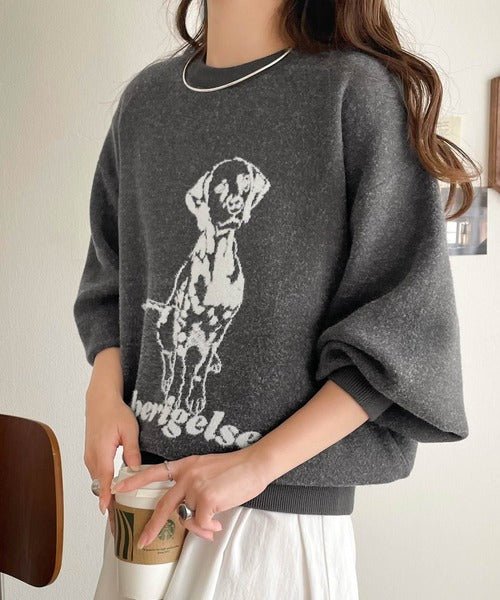 大人可愛い配色のダルメシアン柄が目を惹く、存在感あるジャガードニット。