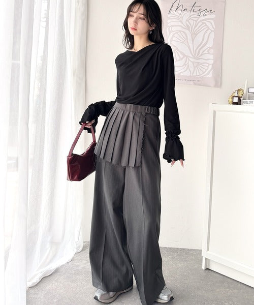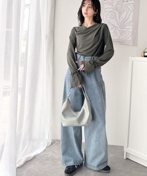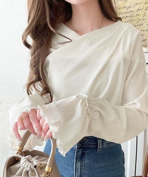 大人の魅力と甘さを兼ね備えた。キャンディースリーブオフショルダードレープネックリブトップス(長袖) ce1110109