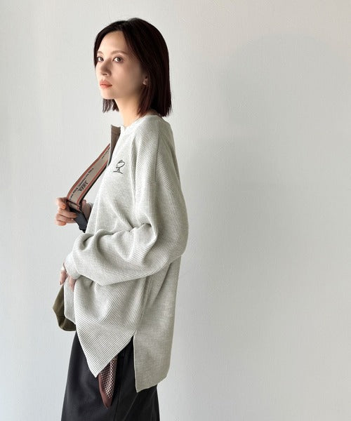 洒落感アップのこなれT。胸刺繍ワッフルオーバーサイズキーネックロンT(長袖) ce1260496