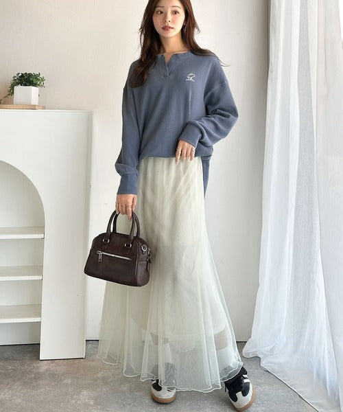 裾の両サイドにスリットが入っているため、前だけタックインしてもバランスよく決まるデザインに。