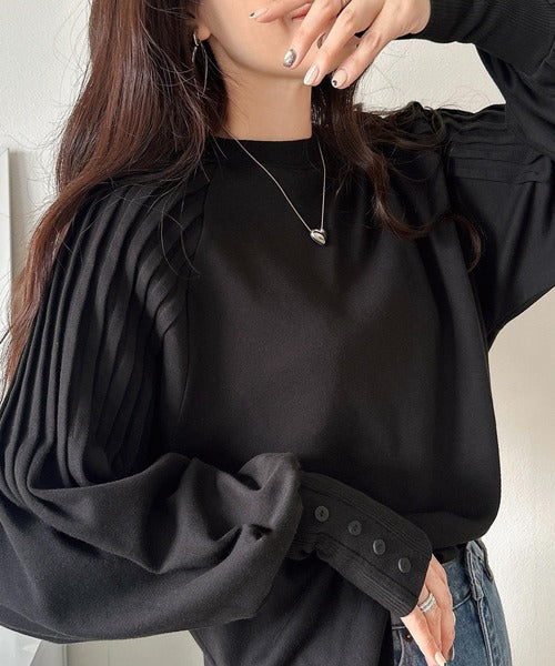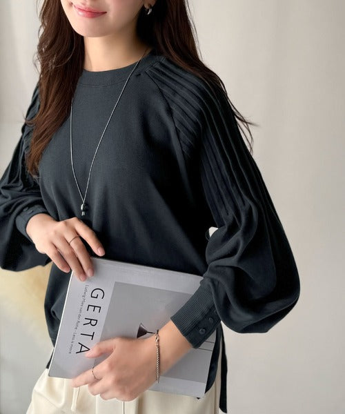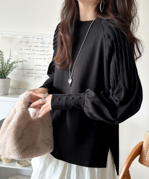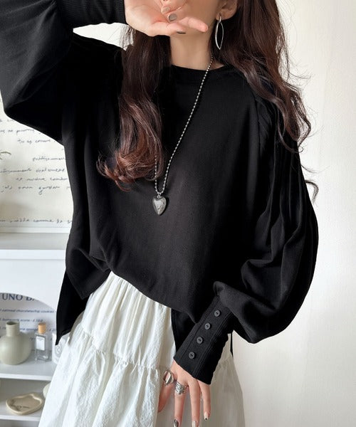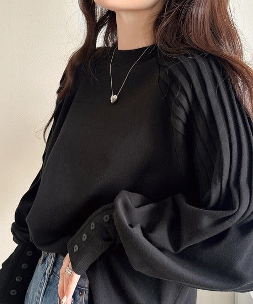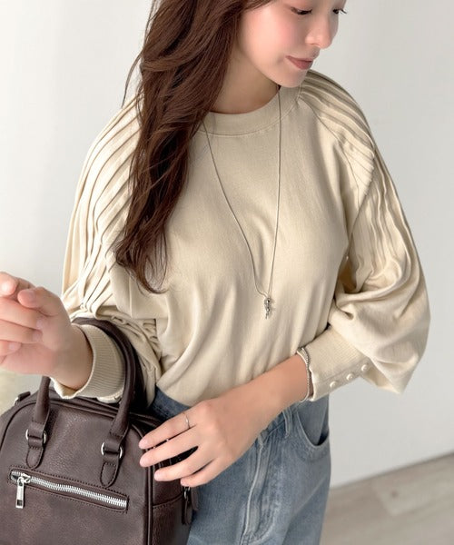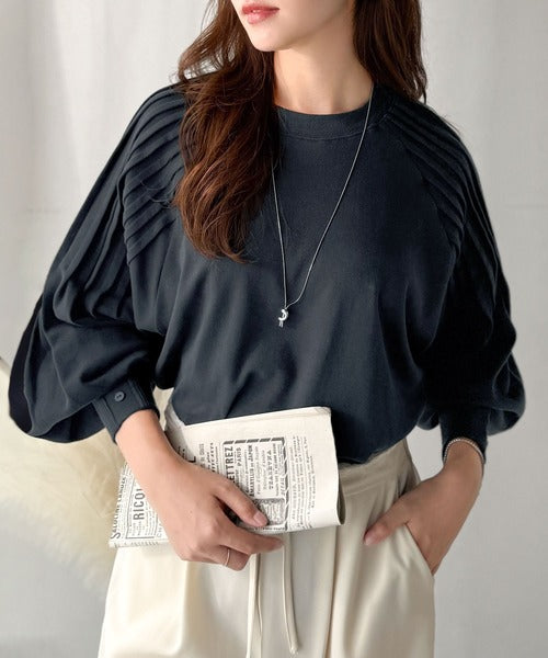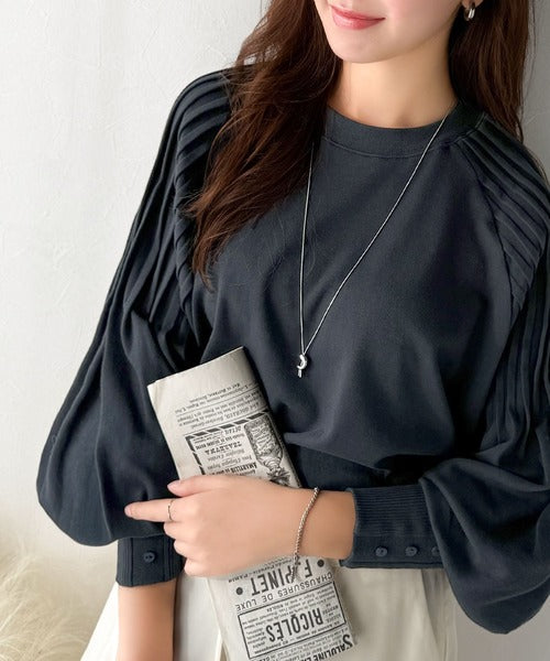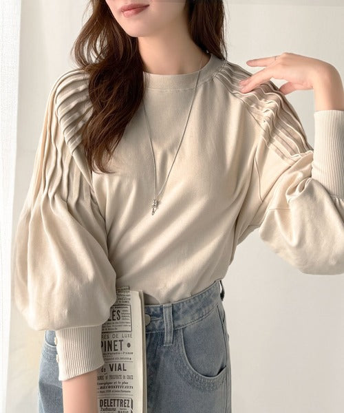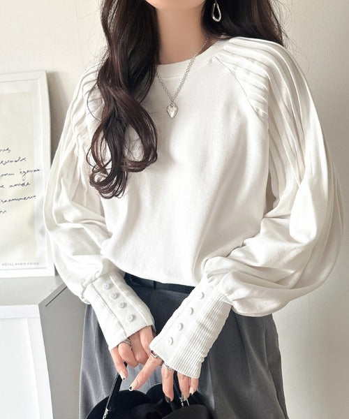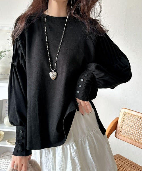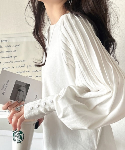 タックの入ったバルーンスリーブが特徴的なロングリブスリーブカットソー。