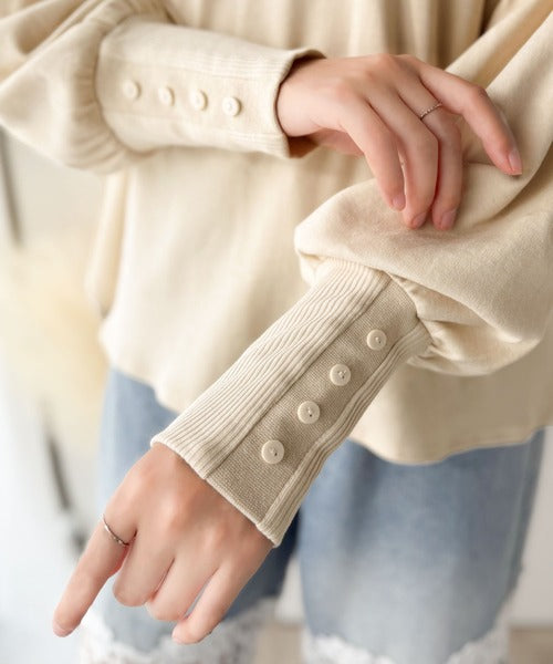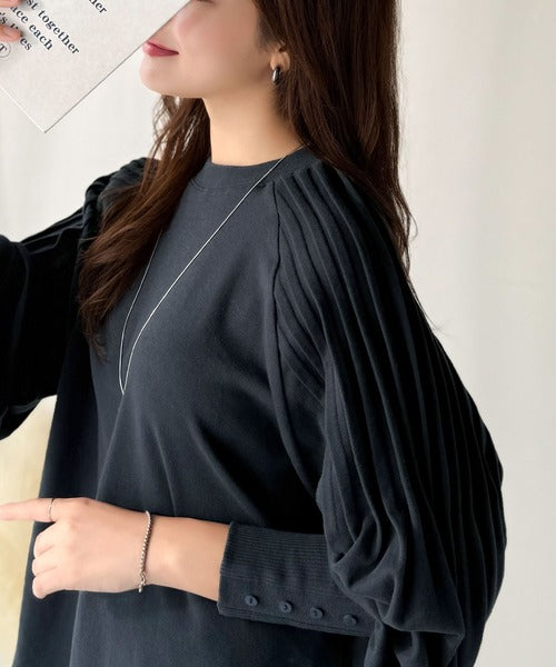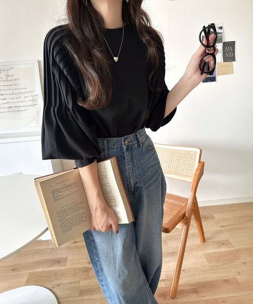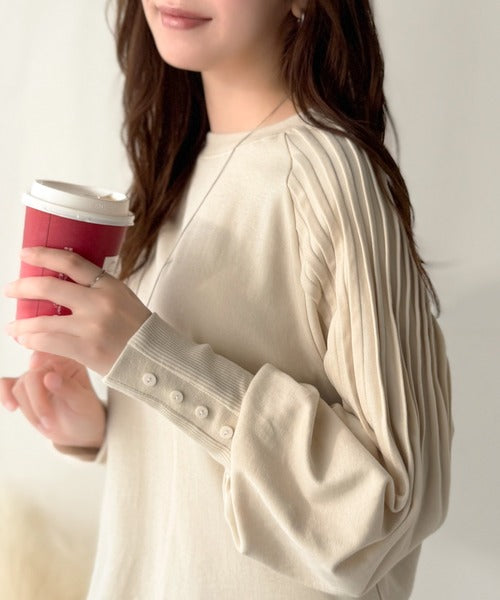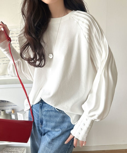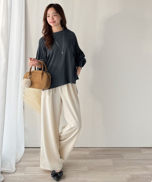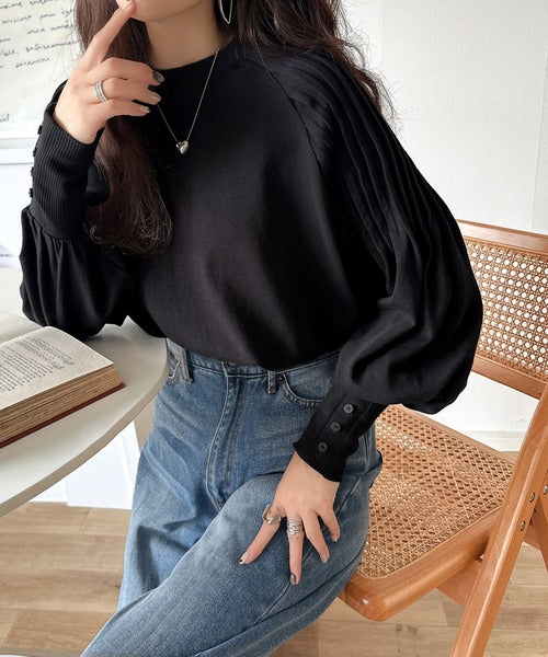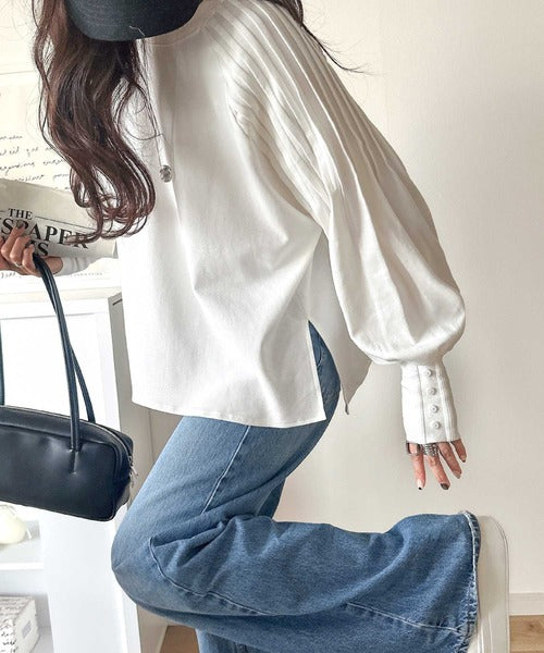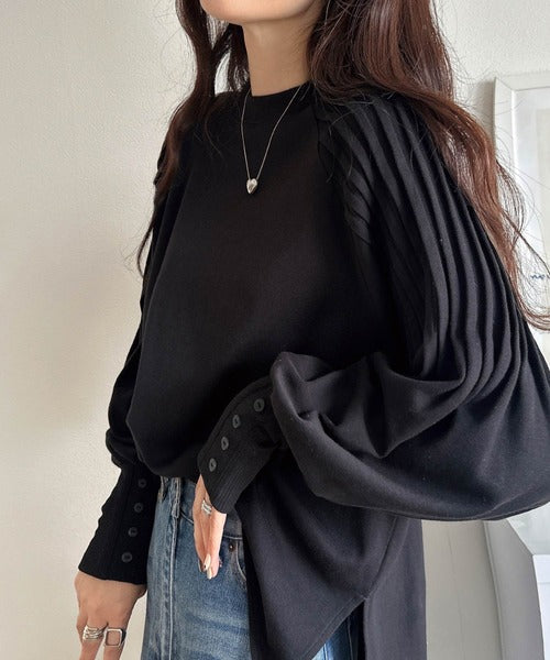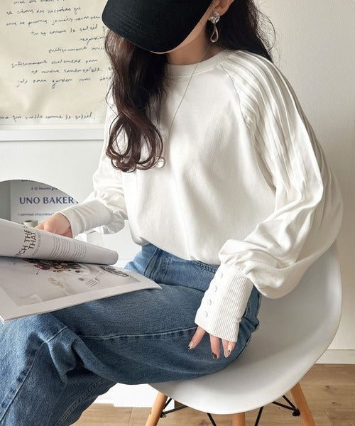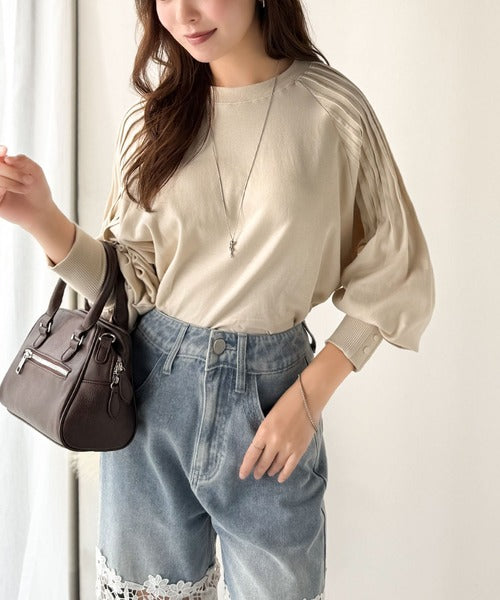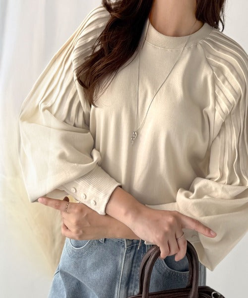 タックの入ったバルーンスリーブが特徴的なロングリブスリーブカットソー。