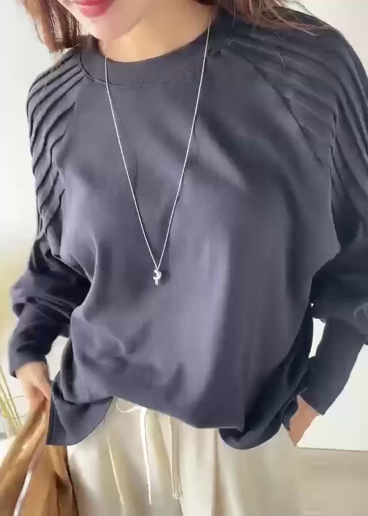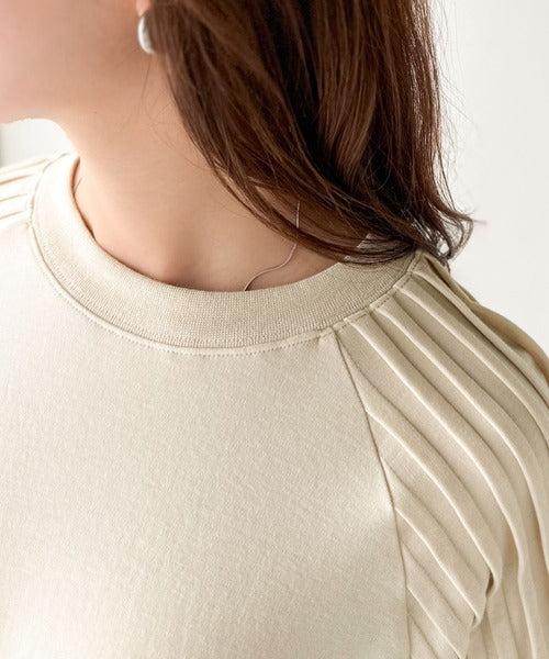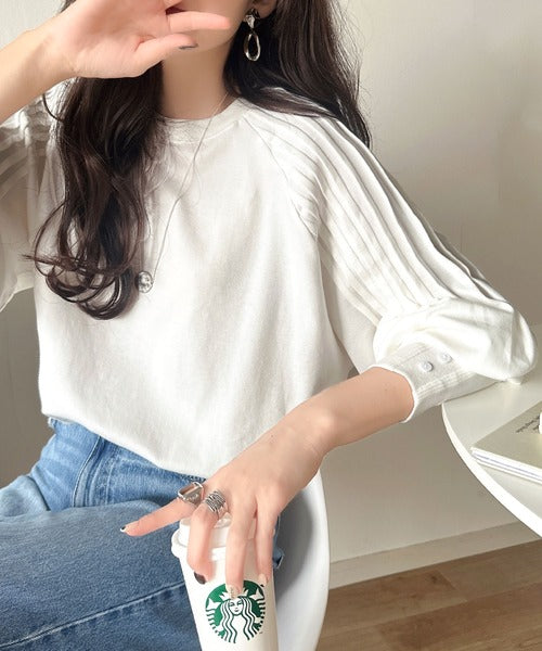カジュアルな中にも上品さを。綿100%袖山タックラグラン長袖Tシャツ ce1300023