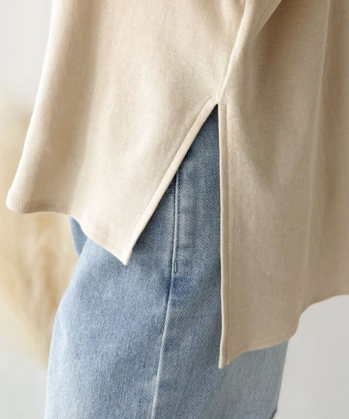 着丈は前後差をつけ、サイドにはスリットも入っているので、