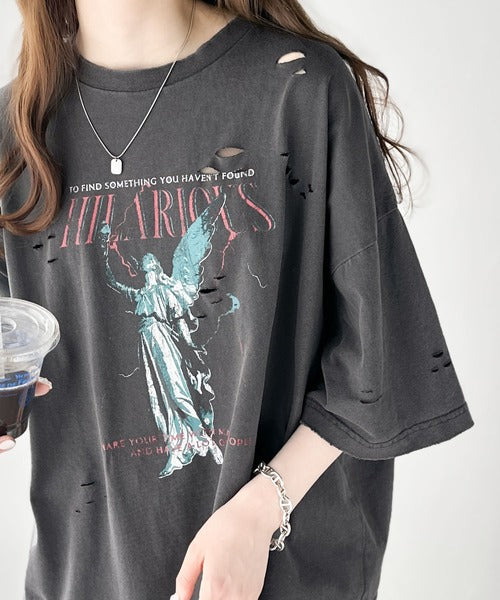 H157 M着用 カラー:F 女神:(半袖)襟、袖、裾にダメージ加工が入っており、個体差がございます