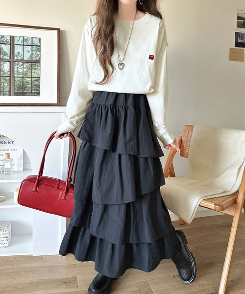 デニムやイージーパンツはもちろんタイトロングスカートやプリーツスカートもばっちりキマル!