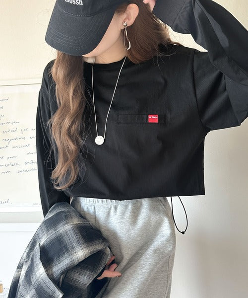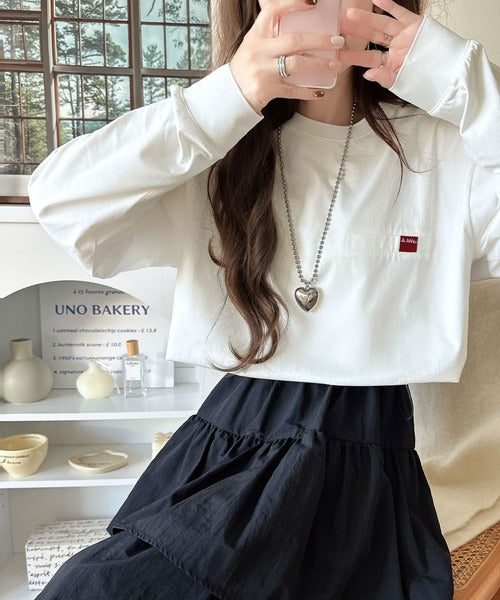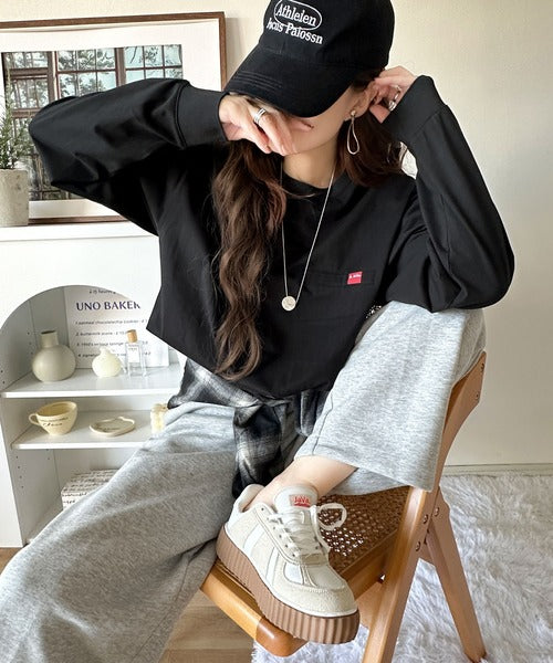 スカートやミニ丈の女性らしいアイテムや、ショートボトムスと合わせた韓国系ファッションにもハマるトップスです。