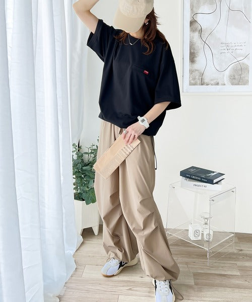 ゆったりとしたオーバーサイズと、裾のドロストがポイントになったスポーティなデザイン、ツヤ感のある素材は1枚でも着映えします◎