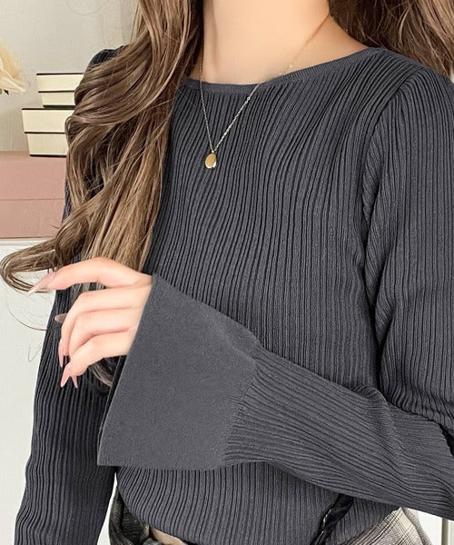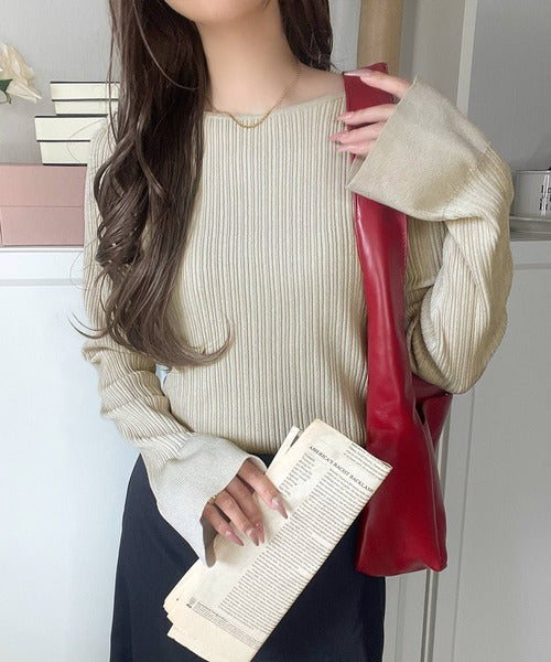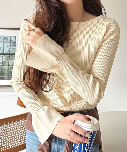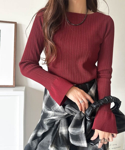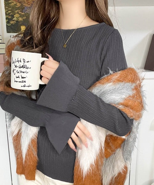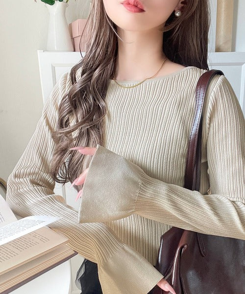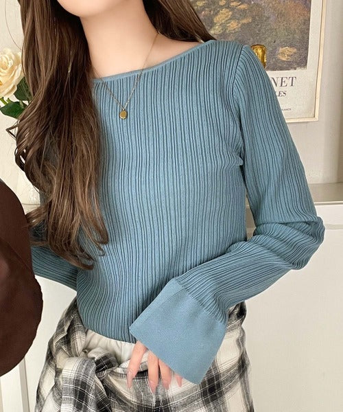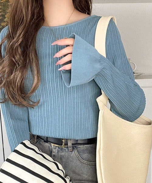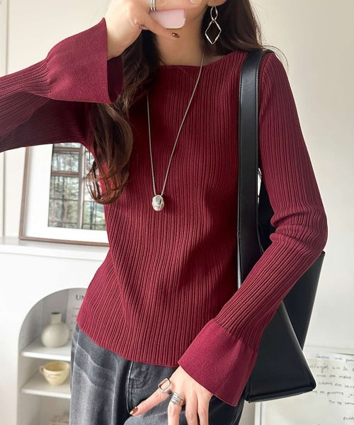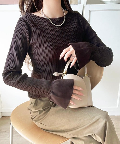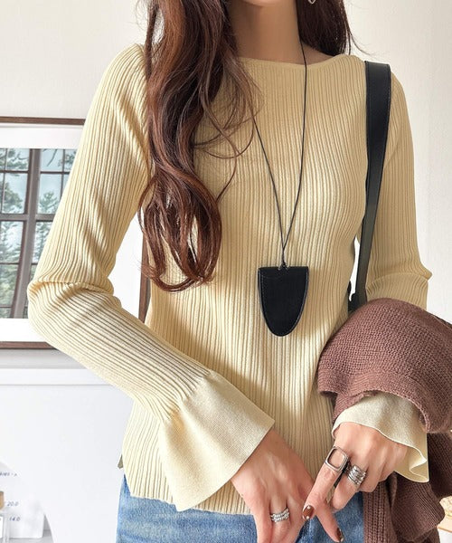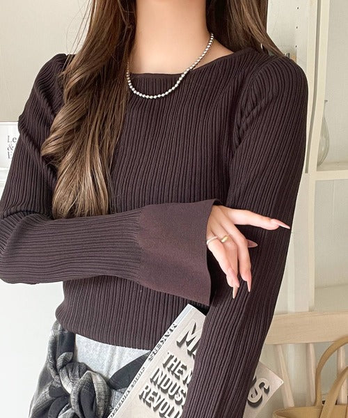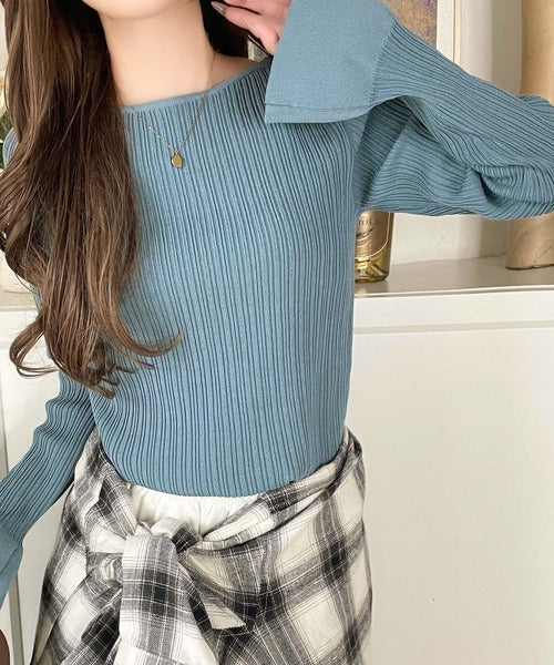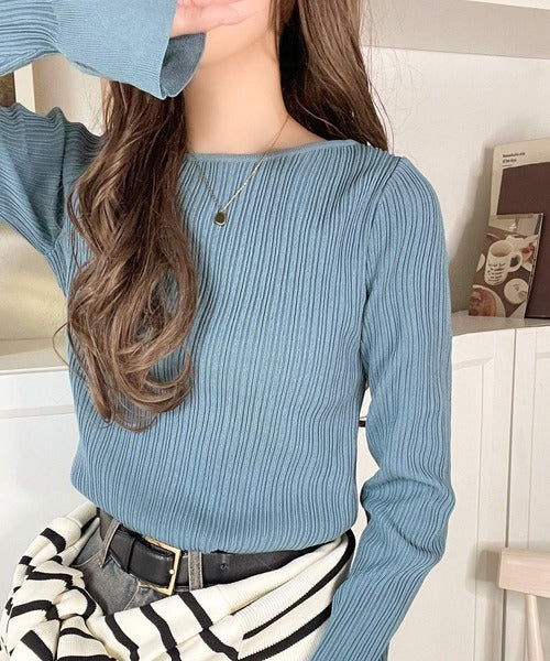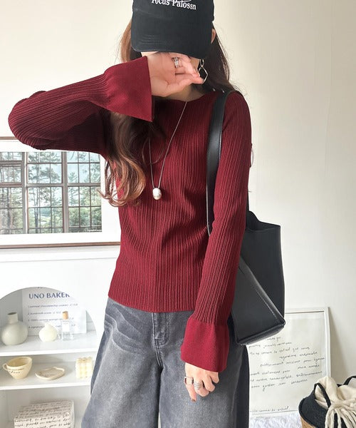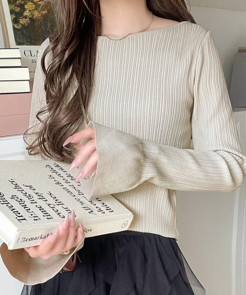 シンプルに差をつける、袖口フレアの美ライン。ランダムリブボートネックニット ce1050339