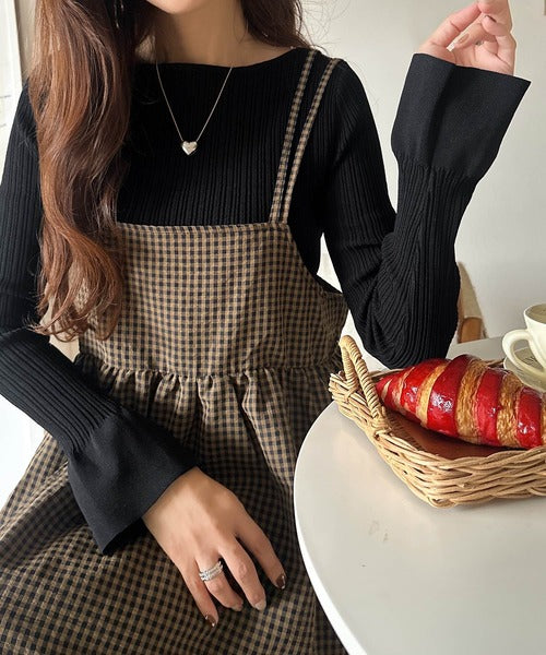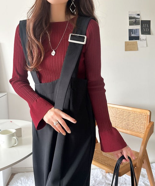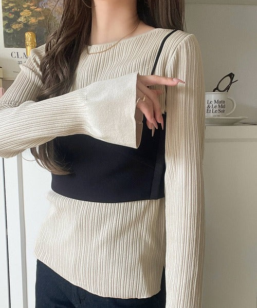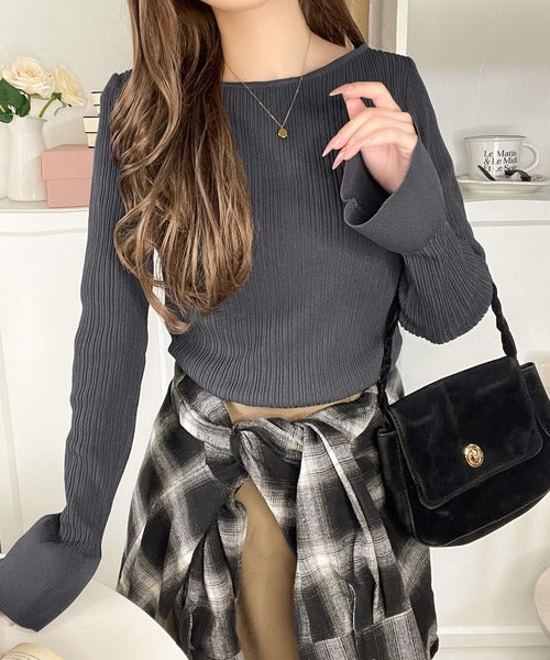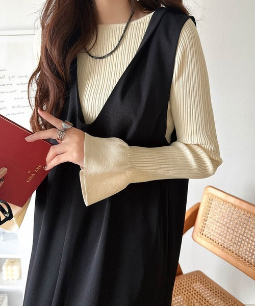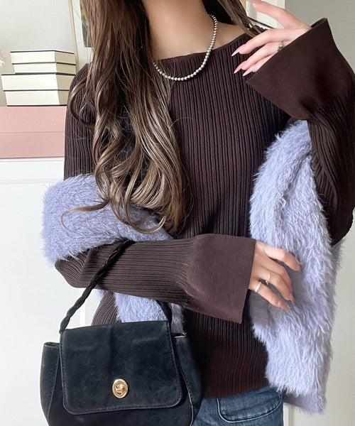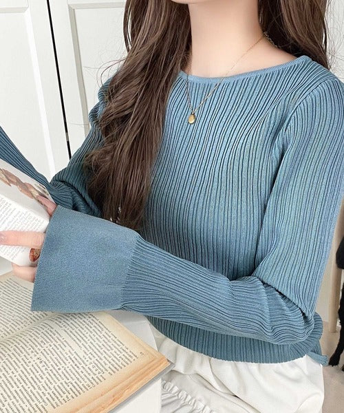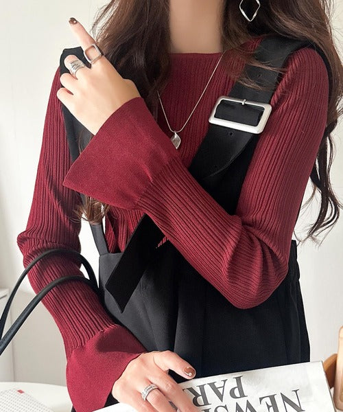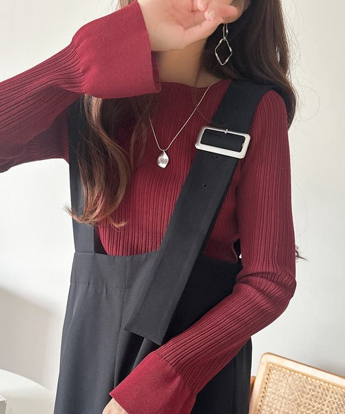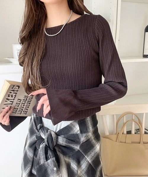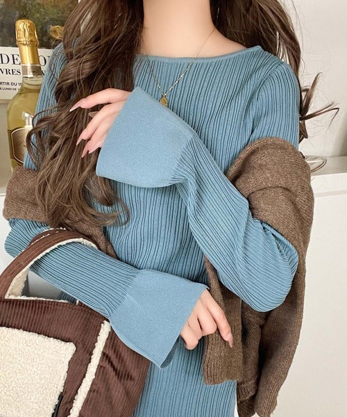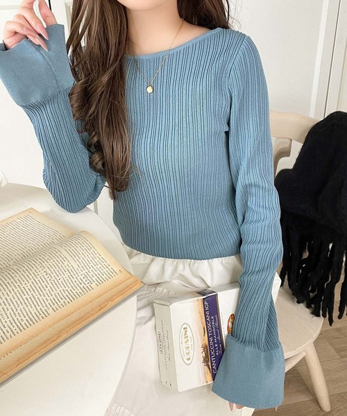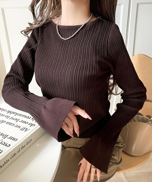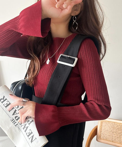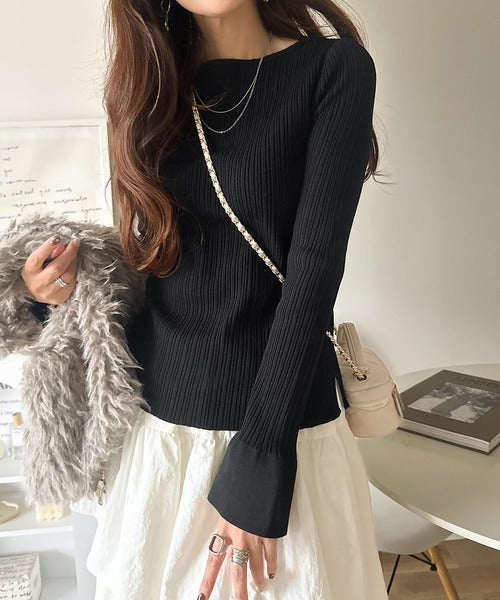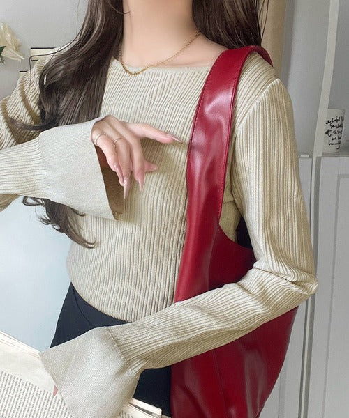 シンプルに差をつける、袖口フレアの美ライン。ランダムリブボートネックニット ce1050339