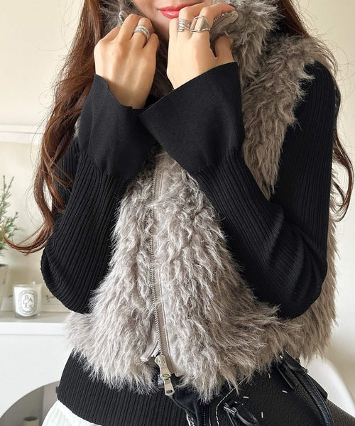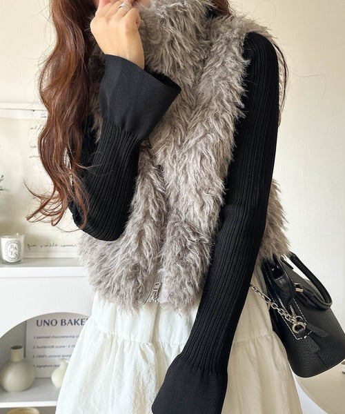 縦ラインを強調するランダムリブがすっきりとした印象に。