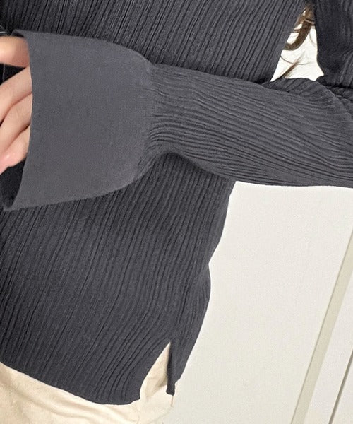ベーシックなデザインながら、袖口のフレアデザインがさりげなくトレンド感をプラスします。