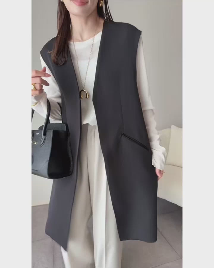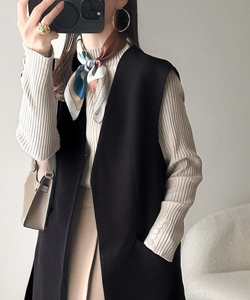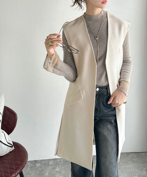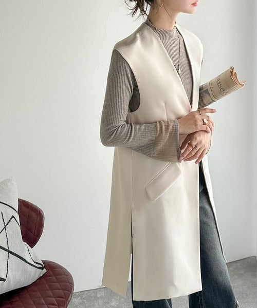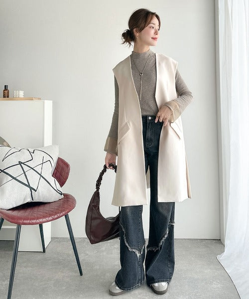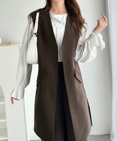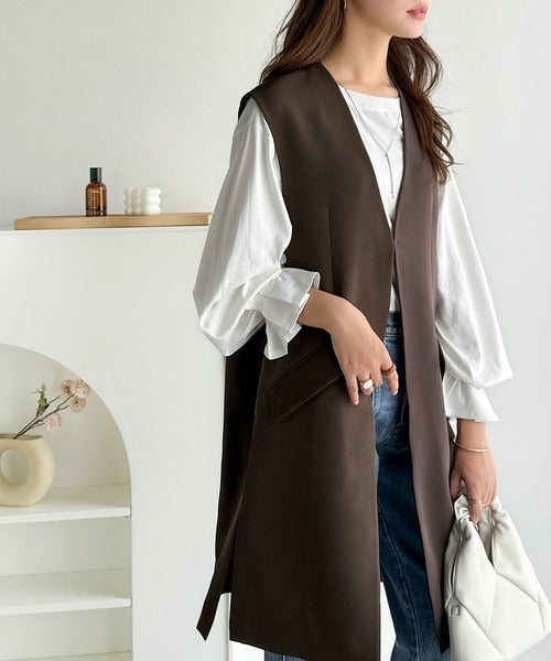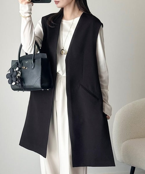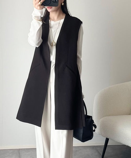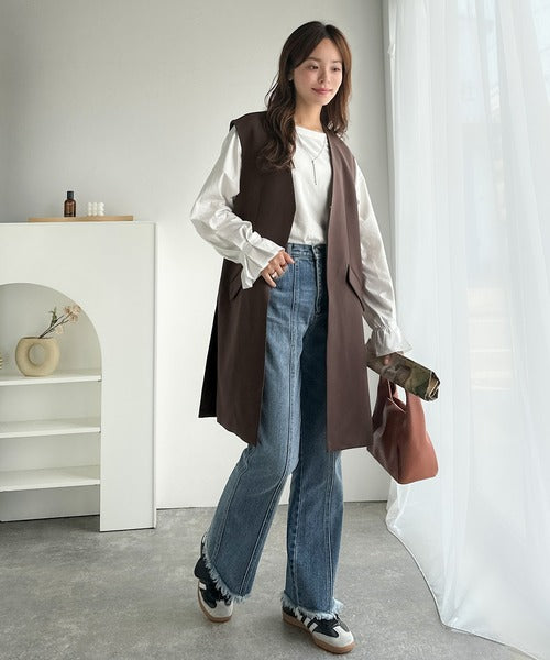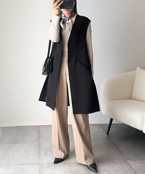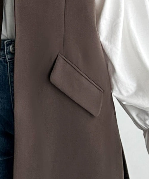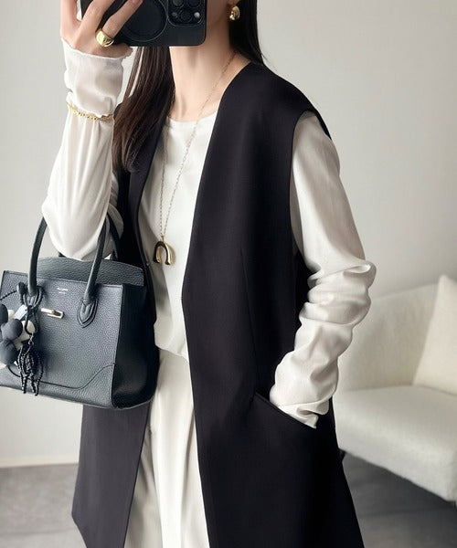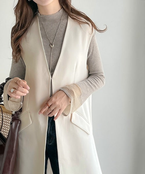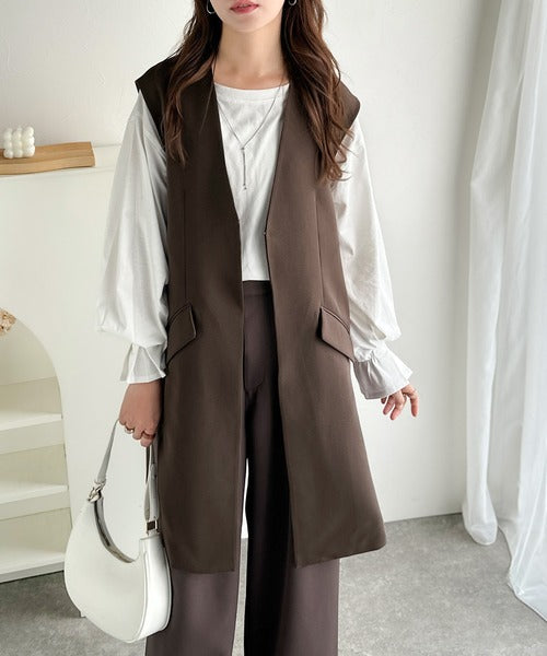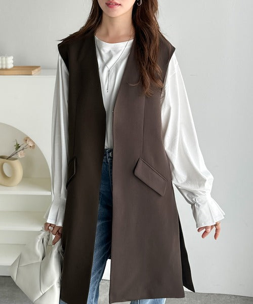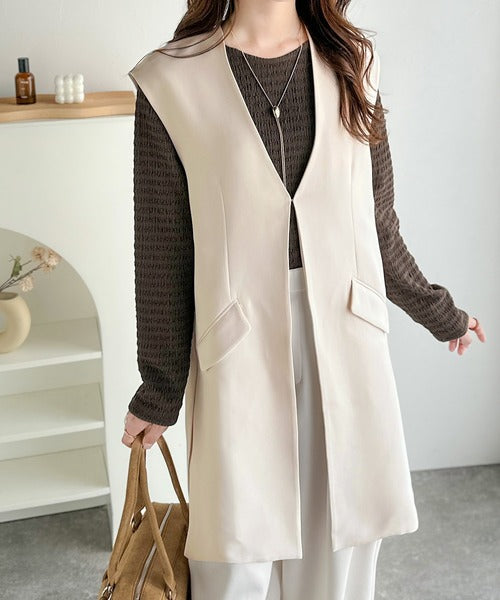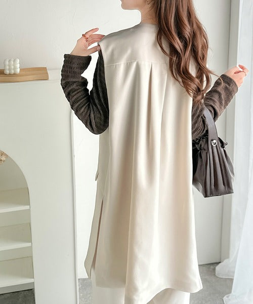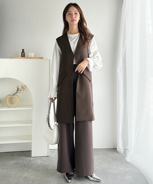 足し算でファッションを楽しむ♪大人のレイヤードアイテム。フラップポケット付きロングジレ(セットアップ可能) ce1070180