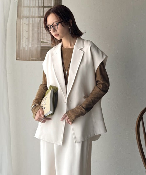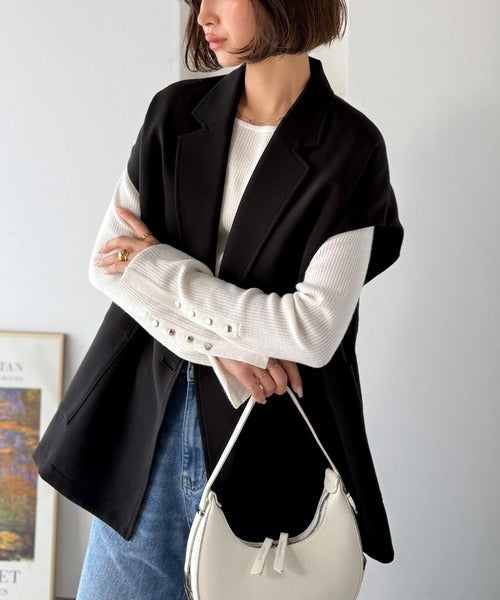 テーラードデザインのダブルジレベスト。オーバーサイズでゆったりとした着心地。