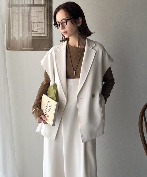 秋コーデの入り口にぴったりの一品。テーラードダブルジレベスト(セットアップ可能) ce1070183